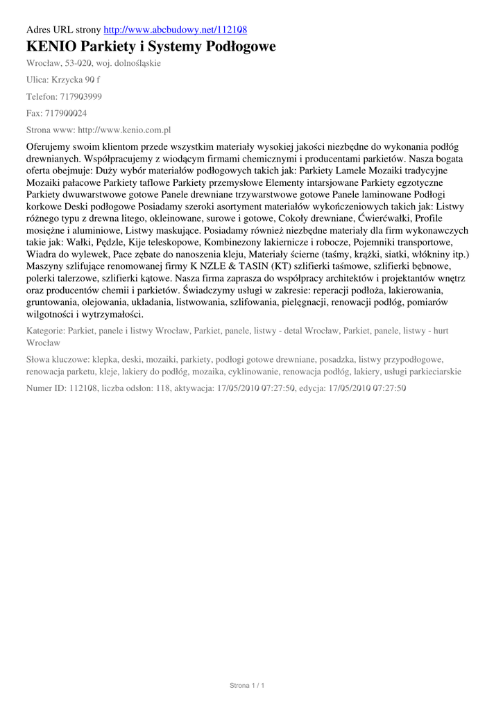 KENIO Parkiety i Systemy Podlogowe, Wroclaw
