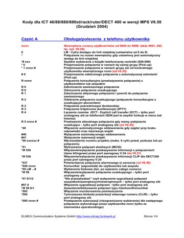 Kody dla ICT 46/88/880/880xt/rack/ruter/DECT 400 w wersji MPS V6