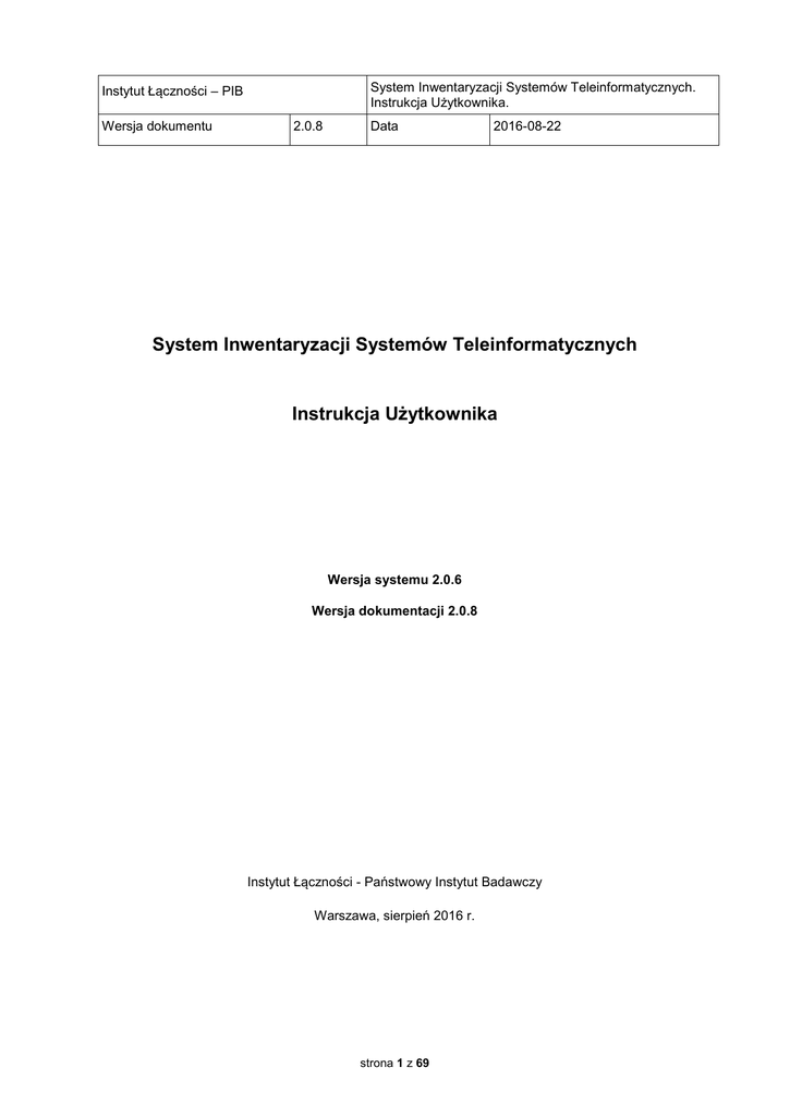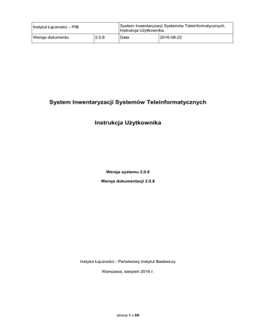 Dokument zawiera podstawowe informacje dla Użytkowników o Systemie Inwentaryzacji Systemów Teleinformatycznych (SIST_BASIA)