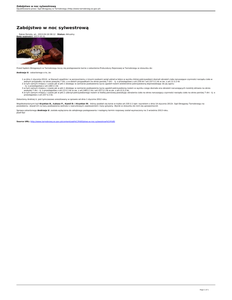 Zabójstwo w noc sylwestrową - Sąd Okręgowy w Tarnobrzegu