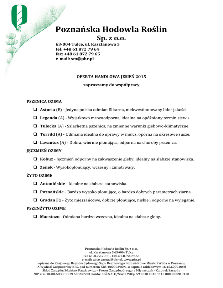 Oferta handlowa Jesień 2015 - Poznańska Hodowla Roślin Sp. z oo