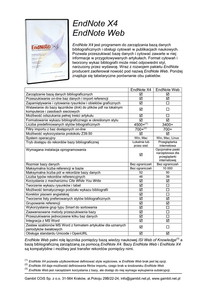 EndNote X4 EndNote Web - Gambit Centrum Oprogramowania i