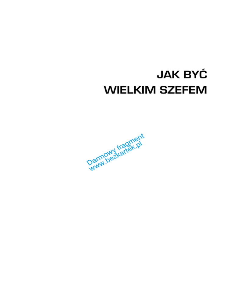 JAK BYĆ WIELKIM SZEFEM t en m l g fra tek.p y r ow ka rm.bez a D ww w W serii „Recepta na biznes” Jeffrey J. Fox napisał następujące książki: 1. Jak zostać mistrzem marketingu, czyli o zasadach, dzięki którym dzwoni kasa 2. Jak zarobić duże pieniądze w swojej firmie, czyli o świętych zasadach ludzi biznesu 3. Jak być wielkim szefem, czyli jak znaleźć najlepszych pracowników t 4. Jak zostać szamanem sprzedaży, en m l czyli jak sprowadzić doafirmy g .p deszcz pieniędzy r y f artek w o k 5. Nie wysyłaj aCV, rm.bez D czyli jak sięwdostać ww do dobrej firmy 6. Jak zostać CEO, czyli o zasadach dochodzenia na szczyty 7. Sekrety wielkich handlowców, czyli jak dokonywać tego, czego inni nie mogą Więcej informacji o autorze na stronie: www.foxandcompany.com Jeffrey J. Fox JAK BYĆ WIELKIM SZEFEM t en m l g fra tek.p y r ow ka rm.bez a D ww w czyli jak znaleźć najlepszych pracowników Oficyna Wydawnicza „Vocatio” Warszawa Tytuł oryginału: How to Become A Great Boss Przekład: Teresa Kowalska Redakcja: Irena Kanicka Redakcja techniczna: Małgorzata Biegańska-Bartosiak Projekt okładki: Joanna Złonkiewicz Korekta: Renata Borkowska Copyright © 2002 by Jeffrey J. Fox All rights reserved. First published by Hyperion. t en The Polish translation rights published with l gmin.pagreement Doris S. Michaels Literary Agency, fra Inc., ek New York, USA wy art o zby k Oficyna Wydawnicza „Vocatio”. Copyright for the Polish edition m e edition r © .2006 b All rights Polish reserved Dtoa the w ww Wszelkie prawa do wydania polskiego zastrzeżone. Książka ani żadna jej część nie może być przedrukowywana ani w jakikolwiek inny sposób reprodukowana czy powielana mechanicznie, fotooptycznie, zapisywana elektronicznie lub magnetycznie, ani odczytywana w środkach publicznego przekazu bez pisemnej zgody wydawcy. W sprawie zezwoleń należy zwracać się do: Oficyna Wydawnicza „Vocatio” 02-798 Warszawa, ul. Polnej Róży 1 e-mail: [email protected] Redakcja: fax (22) 648 63 82, tel. (22) 648 54 50 Dział handlowy: fax (22) 648 03 79, tel. (22) 648 03 78 e-mail: [email protected] Księgarnia Wysyłkowa „Vocatio” 02-798 Warszawa 78, skr. poczt. 54 tel. (603) 861 952 e-mail: [email protected] www.vocatio.com.pl ISBN 83-7146-235-2 t en m l g fra tek.p y r ow ka rm.bez a D ww w Jak losy człowieka mogą wpaść w ręce głupca. Bob Dylan Nie bądź szefem szefa swojego, Nie ma większej zniewagi dla niego. Willie Nelson t en m l g fra tek.p y r ow ka rm.bez a D ww w t en m l g fra tek.p y r Dedykacja ow zka m e r Da w.b Wielkim szefom naww każdym miejscu – w firmach dużych i małych, w rodzinach, w szkole, na boisku sportowym, w wojsku, w kuchni, przy ołtarzu, na pierwszej linii frontu. Wiecznie zatroskanej mamie, która nie żałuje swym dziewczynkom pieszczot, miłych słów, opieki i zachęty, aż staną się kobietami. Opiekunom, którzy bezpiecznie przeprowadzają swych podopiecznych przez ruchliwą ulicę. Właścicielom firm, którzy nie wypytują solidnych pracownic, czy koniecznie akurat teraz muszą wziąć te dwa dni urlopu. Nauczycielkom, które stawiając uczniowi za wypracowanie dwóję z gramatyki dodają szóstkę za pomysł, motywując ucznia na całe życie dopiskiem „Naprawdę świetne!”. Trenerom, którzy na zakończenie sezonu z sercem nagradzają każdego zawodnika w drużynie. Dowódcom, którzy robią wszystko, żeby ich oddziały wróciły całe i zdrowe. Agentom literackim, którzy bezwzględnie stwierdzają: „Nie możemy sprzedać Chinom praw do tej książki bez manuskryptu”. Wydawcom, którzy stanowczo przypominając daty, spokojnym głosem ostrzegają: „Nie żyjesz, jeśli zawalisz kolejny termin”. Żonom, które mówią: „Przestań się nad sobą użalać i skończ wreszcie tę książkę!”. Pracownikom i kierownikom na całym świecie, którzy muszą czasami poprawiać swoich szefów, aby praca została wykonana prawidłowo. t en m l g fra tek.p y r ow ka rm.bez a D ww w t en m l g .p k fra tepodziękowania y Szczególne r w a o zk arm .be D w Poprosiłem kilku szefów, ww żeby podzielili się specjalną „lekcją szefostwa”, czymś, czego sami nauczyli się od swoich wielkich szefów, nauczycieli, trenerów czy opiekunów i z czego z powodzeniem korzystają. Dziękuję wam wszystkim i w waszym imieniu dziękuję waszym mistrzom. Mądrością podzielili się: Osoby anonimowe (cztery); Michael Abberley, wiceprezes ds. marketingu w Sandvik Coromant Company; James Baker, prezes Sandvik Inc.; Ted Carl, wiceprezes regionalny Applied Industrial Technologies; John Chickosky, wiceprezes Bioprocessing Sales w Kendro; Larry Culp, CEO w Danaher Corporation; William Davis, prezes i CEO w Congress Financial Corporation; Joseph C. Day, prezes zarządu i CEO w Freudenberg-NOK General Partnership; dr David D’Eramo, prezes i CEO w Saint Francis Hospital; Donald Fenton, właściciel i dyrektor Fenton Associates; William Ferry, były prezes Eastern Mountain Sports; Randy Fitzhugh, wiceprezes ds. sprzedaży w Danaher Controls; James T. Flaherty, partner O’Connell, Flaherty & Attmore; Lee Flaherty, założyciel i prezes zarządu Flair Communications Agency; Joseph Grewe, prezes Films, Foam & Fabrics Division w Saint-Gobain; James Hartnett, prezes i CEO w Longwood Industries Ins.; Rod Hoyng, wiceprezes ds. marketingu w Millar Elevator t Company; en m l g Christopher A. Jones, prezes zarządu fra tek.pi CEO w The Jones y r Companies; ow zka rm.bePrinting Kevin Kalagher, prezes Finlay Company; a D ww Richard Kimball, wiceprezes zarządu Rock of Ages Corporaw tion; C. T. „Gus” Kontonickas, wiceprezes i dyrektor generalny Loctite Industrial Americas; Ayn LaPlant, dyrektor naczelny Beekley Corporation; Erle Martin, prezes Niebaum-Coppola Winery; Stephen T. Merkel, prezes Loctite Corporation; Joseph Mihalick, wiceprezes Longwood Industries Inc.; Reynolds Parsons, szef Centrum Usług Wspólnych w Ingersoll-Rand; Paul Pendemont