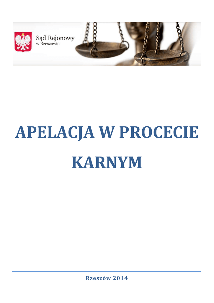 APELACJA W PROCECIE KARNYM Rzeszów 2014 Bi uro O bsł ugi I nt eresant a APELACJA Po przeprowadzeniu postępowania dowodowego (przesłuchaniu oskarżonego, świadków, biegłych) sąd pierwszej instancji zamyka przewód sądowy i wydaje wyrok. Od wyroku sądu pierwszej instancji stronom przysługuje apelacja. Stronami procesu karnego są: prokurator (oskarżyciel publiczny), oskarżyciel prywatny, oskarżyciel posiłkowy, powód cywilny, oskarżony. Obrońca oskarżonego może składać środki zaskarżenia w jego imieniu, może to zrobić sam oskarżony, mogą też obaj złożyć osobne środki zaskarżenia. Oskarżyciel prywatny, oskarżyciel posiłkowy i powód cywilny mogą także ustanowić pełnomocnika, który będzie ich reprezentował w procesie karnym. On również może składać w imieniu osób, które reprezentuje, środki zaskarżenia. Wyrok Możemy złożyć apelację od każdego wyroku - zarówno skazującego, jak i uniewinniającego, umarzającego postępowanie, warunkowo umarzającego postępowanie, a także wyroku zaocznego i łącznego. Zazwyczaj wyrok zostaje wydany na ostatniej rozprawie. Może się jednak zdarzyć, że sąd odroczy wydanie wyroku (najwyżej na 7 dni). Od ogłoszenia wyroku strony mają 7 dni na złożenie na piśmie wniosku o sporządzenie uzasadnienia wyroku. Jeżeli w tym terminie złożymy apelację od wyroku, to nie musimy składać dodatkowo wniosku o uzasadnienie. Uzasadnienie i tak zostanie nam doręczone. W terminie 14 dni od doręczenia wyroku możemy jeszcze uzupełnić apelację, jeśli po przeczytaniu uzasadnienia widzimy taką potrzebę. Przed złożeniem apelacji należy bardzo dokładnie zapoznać się z uzasadnieniem wyroku. W uzasadnieniu sąd podaje m.in. fakty, które uznał za udowodnione, i dowody, które uznał za wiarygodne. Gdy się z nim zapoznamy, łatwiej będzie nam napisać apelację, gdyż będziemy mogli w niej kwestionować twierdzenia sądu pierwszej instancji. Zasadą jest to, że doręcza się wyrok jedynie wtedy, gdy strona złoży o to wniosek. Istnieją jednak sytuacje wyjątkowe, kiedy odpis wyroku doręcza się oskarżonemu, nawet jeśli nie złoży on takiego wniosku, a dotyczy to sytuacji, gdy: oskarżonego pozbawionego wolności nie doprowadzono w celu wysłuchania wyroku, a nie miał on obrońcy. Uwaga! Jeśli oskarżony miał obrońcę, oskarżonego nie doprowadzono w celu wysłuchania wyroku, a obrońca nie stawił się w sądzie - to niestety oskarżonemu nie zostanie doręczony odpis wyroku; lub w wypadku wydania wyroku zaocznego, i w tych przypadkach 7-dniowy termin na złożenie wniosku o uzasadnienie wyroku płynie od chwili doręczenia odpisu wyroku, a nie od jego ogłoszenia. Apelacja Apelację należy wnieść do sądu, który wydał wyrok w pierwszej instancji, on przekaże akta razem z apelacją sądowi drugiej instancji. Uwaga! Apelacja od wyroku wydanego w pierwszej instancji przez sąd okręgowy musi być napisana przez adwokata (wyjątek stanowi apelacja wniesiona przez prokuratora). Wymaga formy pisemnej. Bezwzględnie musi ona zawierać: określenie sądu, do którego jest skierowana; oznaczenie sprawy, której dotyczy; imię i nazwisko osoby, która wnosi apelację; określenie, czego żąda wnoszący apelację (uniewinnienia, zmiany wyroku, uchylenia wyroku, itp); uzasadnienie, jeśli apelacja jest wnoszona przez adwokata lub prokuratora; datę i podpis wnoszącego apelację. Jeśli działamy bez adwokata, nie musimy pisać uzasadnienia apelacji, warto jednak napisać, dlaczego nie zgadzamy się z wyrokiem. Nasze argumenty mogą przekonać sąd drugiej instancji. W apelacji możemy powołać się na to, że sąd pierwszej instancji: nieprawidłowo zastosował przepisy prawa karnego; popełnił błędy proceduralne i z tego powodu wydał nieprawidłowy wyrok; błędnie ustalił fakty i z tego powodu wydał nieprawidłowy wyrok; orzekł zbyt surową karę; błędnie zastosował środek zabezpieczający (np. umieścił oskarżonego w szpitalu psychiatrycznym) lub inny środek (np. zakazał oskarżonemu prowadzenia pojazdów). Zakaz zaostrzania wyroku Jeśli apelację wniósł tylko oskarżony lub jego obrońca, sąd drugiej instancji nie może zmienić wyroku na niekorzyść oskarżonego. Sytuacja będzie się przedstawiała tak samo, gdy apelację na korzyść oskarżonego wniesie prokurator (np. w przypadku stwierdzenia, że wyrok sądu pierwszej instancji jest zbyt surowy). Jeżeli jednak z apelacją wystąpi również inna strona procesu (tzn. oskarżyciel posiłkowy, oskarżyciel prywatny, prokurator, powód cywilny) wnosząc o zmianę wyroku na niekorzyść oskarżonego, sąd drugiej instancji może wydać wyrok surowszy niż wyrok sądu pierwszej instancji. Gdy strona wniosła apelację na niekorzyść oskarżonego, sąd może jednak, po przyjrzeniu się sprawie, orzec także na korzyść oskarżonego. Rozprawa w sądzie drugiej instancji W rozprawie apelacyjnej obowiązkowo bierze udział prokurator. Obrońca musi wziąć udział w rozprawie apelacyjnej wtedy, gdy oskarżony powinien mieć obrońcę podczas całego procesu, np. oskarżony jest niewidomy, głuchy, nie rozumie języka polskiego lub zarzuca mu się popełnienie zbrodni. Poza tym obrońca powinien być obecny na rozprawie zawsze, gdy sąd uzna to za konieczne. Obecność oskarżonego na rozprawie apelacyjnej nie jest obowiązkowa. Rozprawa może toczyć się bez jego udziału. Jeżeli oskarżony jest pozbawiony wolności, sąd drugiej instancji może zarządzić doprowadzenie go na rozprawę. Jeśli oskarżony jest pozbawiony wolności i: apelacja została wniesiona na niekorzyść oskarżonego co do winy; apelacja wnosi o wymierzenie kary pozbawienia wolności; apelacja wnosi o zaostrzenie kary pozbawienia wolności; to sąd ma obowiązek sprowadzenia na rozprawę oskarżonego, chyba że uzna za wystarczającą obecność obrońcy. Udział w rozprawie innych stron, pełnomocników nie jest obowiązkowy, chyba że s