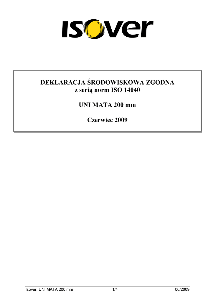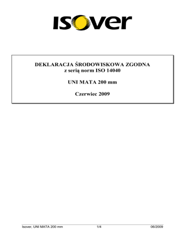 DEKLARACJA ŚRODOWISKOWA ZGODNA z serią norm ISO 14040 UNI MATA 200 mm Czerwiec 2009 Isover, UNI MATA 200 mm 1/4 06/2009 Wstęp Informacje zostały przygotowane przez Saint-Gobain Construction Products Polska Sp. z o.o. 44-100 Gliwice, ul. OkręŜna 16 1 Charakterystyka wyrobu budowlanego 1.1 Definicja Jednostki Funkcyjnej (JF) Biorąc pod uwagę zastosowanie tego produktu, jednostkę funkcyjną opisuje się w sposób następujący: Zagwarantowanie izolacyjności termicznej 1 m2, w całym cyklu uŜytkowania, jednocześnie zapewniając przewidywane właściwości produktu 1.2 Ilość i dane do obliczeń Jednostki Funkcyjnej (JF) Ilości wyrobu budowlanego, pakowanie i inne rzeczy związane zawarte w jednostce funkcyjnej bazują na Typowym Czasie śywotności (TLT) 50 lat. Wyrób budowlany: Rozpatrywany produkt to UNI MATA której głównym zadaniem jest izolowanie termiczne. Opór cieplny produktu wynosi 5.10 K.m2.W-1. • • • Ilość wełny w 1m2 wyrobu: 2.26 kg Grubość wełny : 200 mm, Pokrycie : Brak Pakowanie do dystrybucji i transportu: • Palety drewniane : 0.00817 pallet/m² • Średnia ilość polietylenu : 0.02122 kg/m² Wyrób przewidziany do wdroŜenia (rodzaj i ilość) • n/d Wskaźnik braków podczas wdraŜania i konserwacji: (włączając wymianę części o ile to potrzebne): 5 % Potwierdzenie wiarygodności danych: • Dane pochodzą z fabryki. 1.3 Dane techniczne nie zawarte w jednostce funkcyjnej Więcej parametrów w doukmentacji technicznej. Isover, UNI MATA 200 mm 2/4 06/2009 2 Oddziaływanie na środowisko wyrobu budowlanego względem francuskiej normy NF P 01-010 § 6 Wszystkie rodzaje oddziaływania zostały przyjęte i obliczone wg § 6.1 normy francuskiej NF P01-010, z danych wynikających z analizy cyklu Ŝycia a odnośne jednostki zdefiniowane w całym cyklu uŜytkowania wg § 1.1 i 1.2, i dla jednostki funkcyjnej związanej z TLT N° Oddziaływanie na środowisko 1 ZuŜycie zasobów energii Całkowita energia pierwotna Energia odnawialna Energia nieodnawialna 2 Uszczuplenie zasobów naturalnych (ADP) Wartość dla JF 1.70 MJ/JF 0.0648 MJ/JF 1.63 MJ/FU 0.000927 kg ekwiwalent antymonu (Sb)/JF 0.447 litra/JF Wartość dla TLT Wartość dla TLT wraz z zyskami od izolacji * 84.9 MJ 3.24 MJ 81.7 MJ 0.0464 kg ekwiwalent antymonu (Sb) -31359 MJ -1142 MJ -30217 MJ - 4.90kg ekwiwalent antymonu (Sb) 3 ZuŜycie wody 22.3 litrów 4 Odpady stałe Odpady odzyskiwalne (łącznie) 0.00697 kg/JF 0.348 kg Odpady likwidowane: 0.112 kg Odpady niebezpieczne 0.00225 kg/JF Odpady nie niebezpieczne 0.0551 kg/JF 2.75 kg Odpady obojętne 0.00797 kg/JF 0.399 kg Odpady radioaktywne 1.88 E-06.kg/JF 9.40 E-05 kg 5 Efekt cieplarniany 0.124.kg CO2 6.20 kg CO2 ekwiwalent /JF ekwiwalent 6 Efekt zakwaszania 0.000719.kg SO2 0.0360.kg SO2 ekwiwalent /JF ekwiwalent 3/ 7 Zanieczyszcenie powietrza 34-.9 m JF 1744 m3 8 Zanieczyszczenie wody 0.0275.m3/JF 1.37 m3 9 Destrukcja warstwy ozonowej nd1 nd1 10 Potencjał tworzenia ozonu 3.69 E-05 kg 0.00184 kg ekwiwalent ekwiwalent etylenu /JF etylenu Inne wskaźniki (nie normowe wg NF P01-010) 11 Eutrofizacja 0.00128 g PO4 3- 0.06 g PO4 3ekwiwalent /UF ekwiwalent -4399 litrów -0.0126 kg -2.55 kg -12.0 kg -22.1 kg -0.270 kg -699 kg CO2 ekwiwalent -1.37 kg SO2 ekwiwalent -20540 m3 -212 m3 nd1 -0.186 kg ekwiwalent etylenu -2.3577 g PO4 3ekwiwalent *Zobacz "Jak czytać dane" Uwaga 1 1 Brak emisji CFC lub HCF Isover, UNI MATA 200 mm 3/4 06/2009 3 Dodatkowe informacje 3.1 Pochodzenie danych Firma uczestnicząca w tym opracowaniu: Nazwa producenta: Saint-Gobain Construction Products Polska Sp. z o.o. 44-100 Gliwice, ul. OkręŜna 16 Kontakt : Aleksandra Zastawny Tel : +48 32 33 96 107 e-mail : [email protected] Kontakt na dane podstawowe Michaël MEDARD [email protected] Inwentaryzacja cyklu Ŝycia została wykonana w 2009 a łączne dane zostały obliczone przy uŜyciu oprogramowania TEAM wersja 4.0. Jak czytać dane Przykład: -9.0 E -03 = -9.0 X 10-3 Uwaga : (1) Zadaniem materiału izolacyjnego jest zmniejszenie zuŜycia energii i zmniejszenie emisji powstających w momencie uŜytkowania produktu. Ostatnia kolumna po prawej pokazuje “zyski od izolacji”. Tam gdzie występuje znak "-" przed liczbą, wartość ta oznacza róŜnicę pomiędzy oddziaływaniem na środowisko a zyskami płynącymi ze stosowania izolacji. Wynik jest podawany dla Typowego Czasu śywotności (50 lat). Isover, UNI MATA 200 mm 4/4 06/2009
