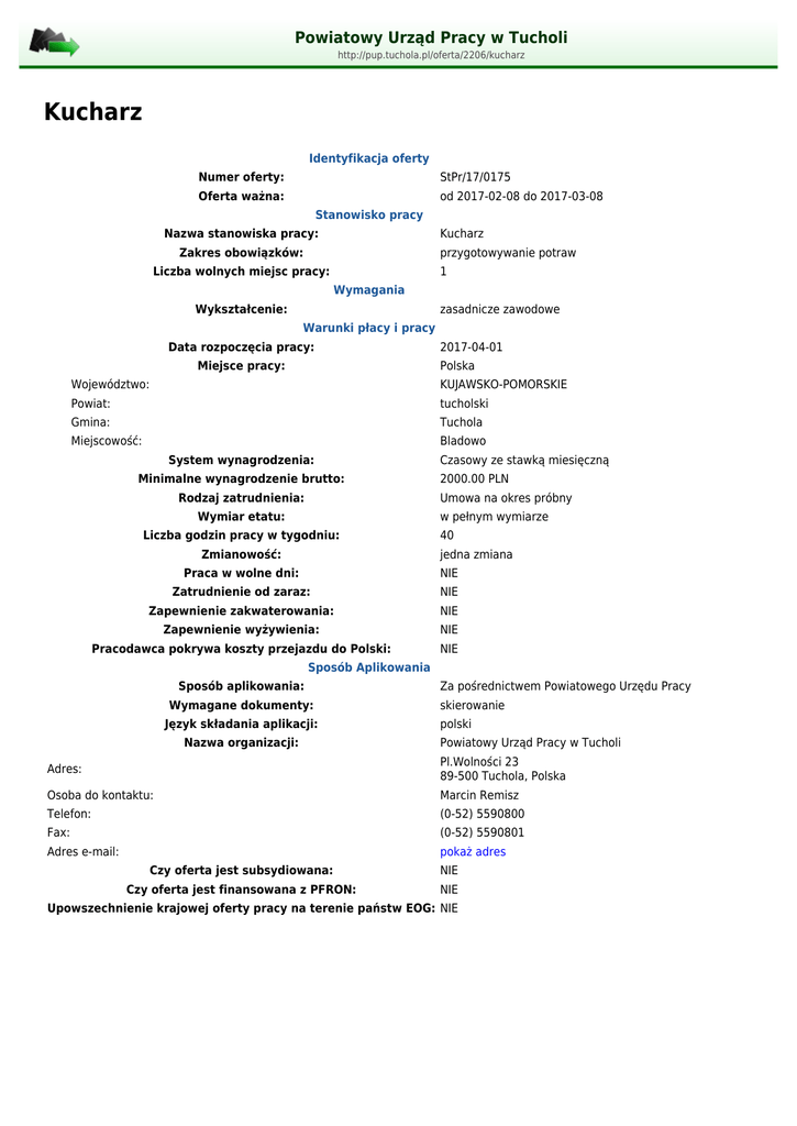Kucharz - Powiatowy Urząd Pracy w Tucholi