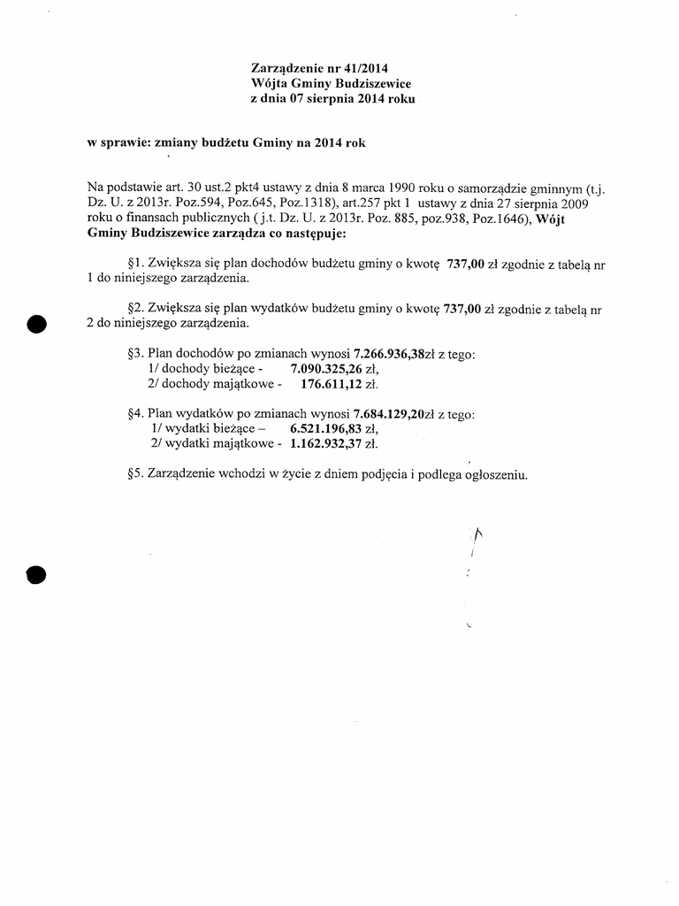 Zarzqdzenie nr 41/2014 Wojta Gminy Budziszewice z dnia 07
