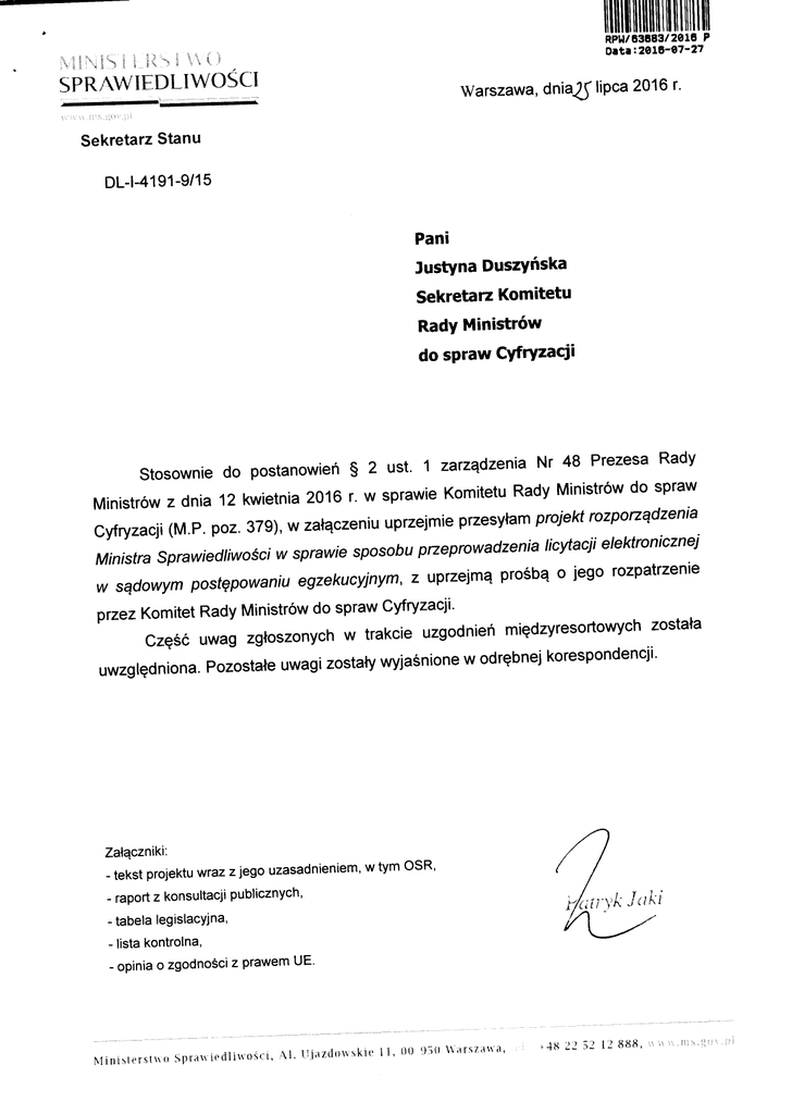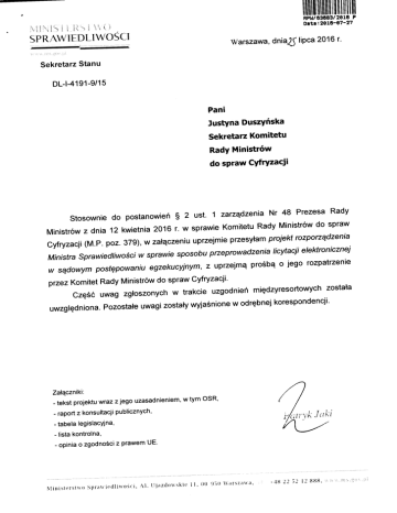 Ministra Sprawiedliwosci w sprawie sposobu przeprowadzenia licytacji elektronicznej