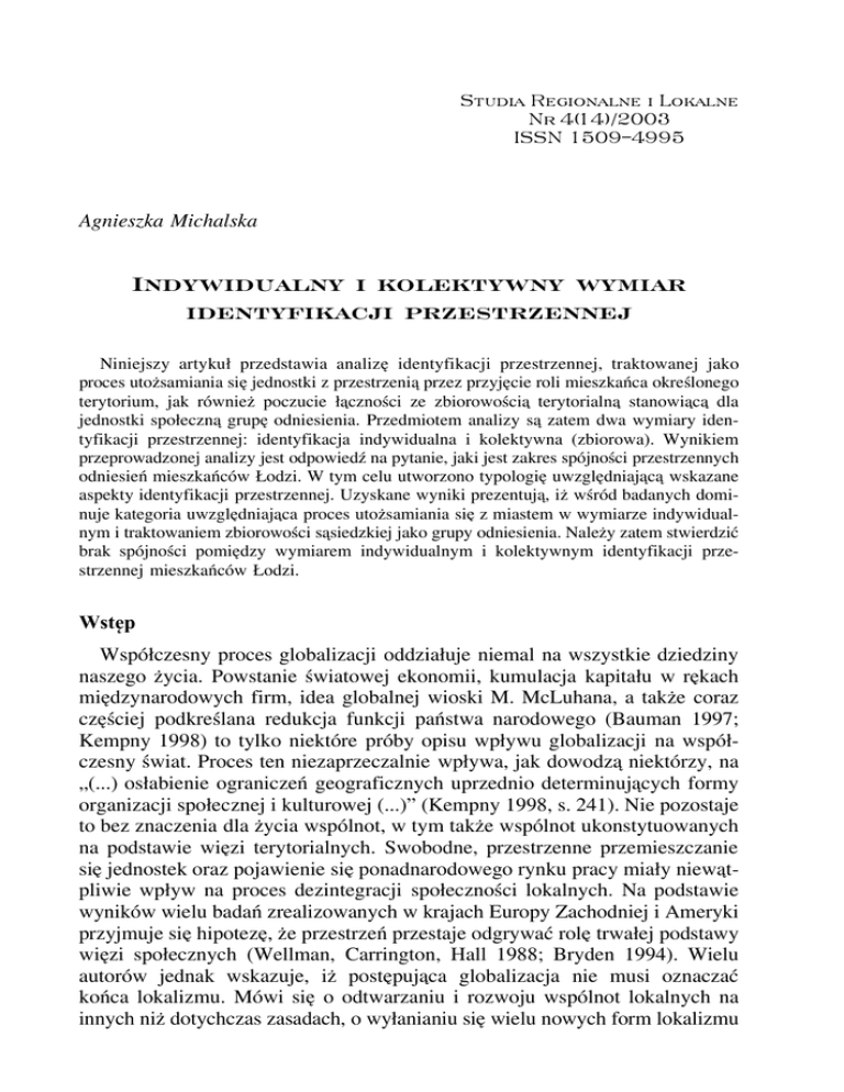 Indywidualny i kolektywny wymiar identyfikacji przestrzennej