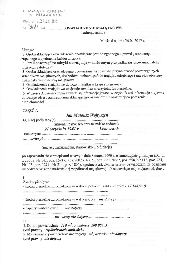 4, ośrviadczenie majątkowe dotyczy mają&t] w kaju i za $anicą