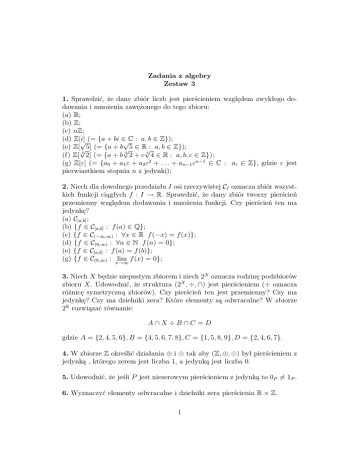 Zadania z algebry Zestaw 3 1. Sprawdzić, że dany zbiór liczb