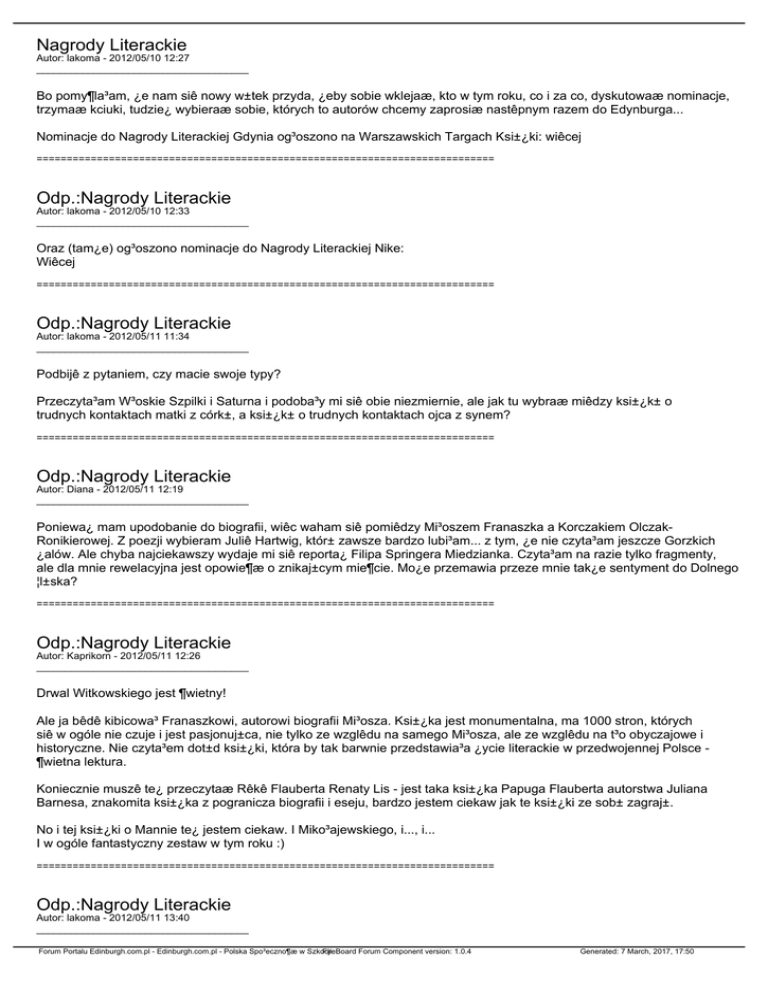 Nagrody Literackie Odp.:Nagrody Literackie Odp