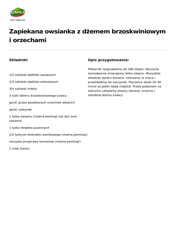Przepis Łowicz: Zapiekana owsianka z dżemem brzoskwiniowym i