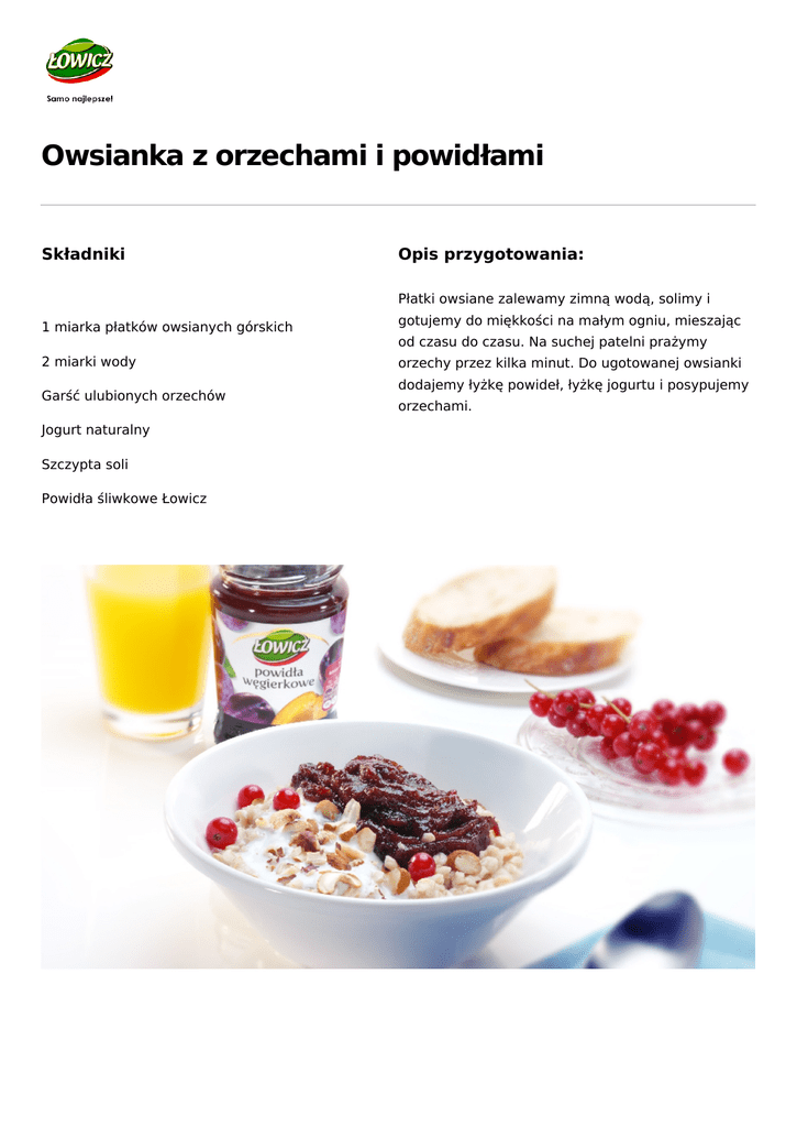 Przepis Łowicz: Owsianka z orzechami i powidłami