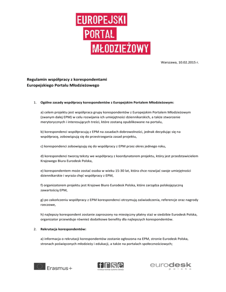 Regulamin współpracy z korespondentami Europejskiego Portalu