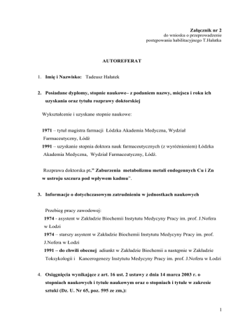 Tadeusz Hałatek 2. Posiadane dyplomy, stopnie naukowe