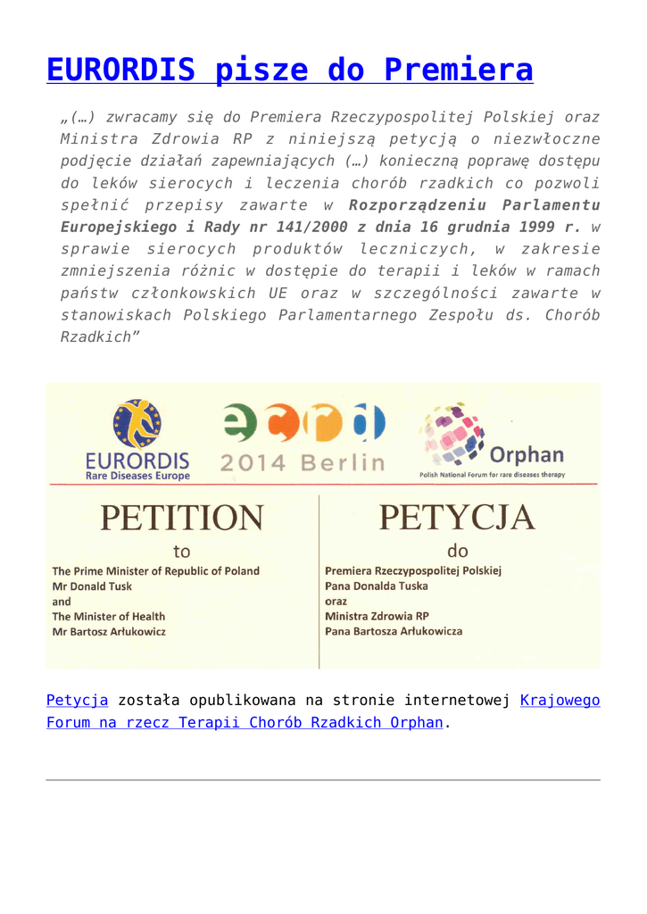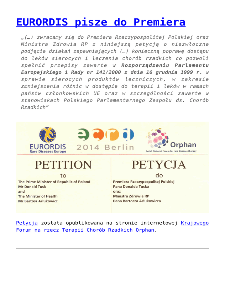 EURORDIS pisze do Premiera,Posiedzenie Komisji