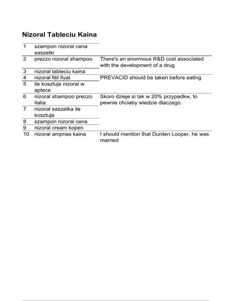 Nizoral Tableciu Kaina 1 2 3 4 5 szampon nizoral cena saszetki prezzo nizoral shampoo nizoral tableciu kaina nizoral fitil fiyat ile kosztuje nizoral w aptece 6 nizoral shampoo prezzo italia 7 nizoral saszetka ile kosztuje 8 szampon nizoral cena 9 nizoral cream kopen 10 nizoral ampnas kaina Powered by TCPDF (www.tcpdf.org) There's an enormous R&D cost associated with the development of a drug PREVACID should be taken before eating Skoro dzieje si tak w 20% przypadkw, to pewnie chciaby wiedzie dlaczego. I should mention that Durden Looper, he was married