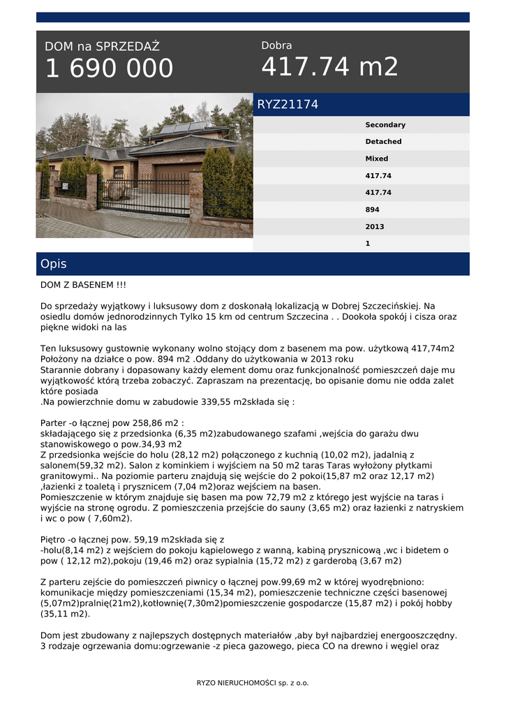 1 690 000 417.74 m2 - RYZO Nieruchomości Szczecin