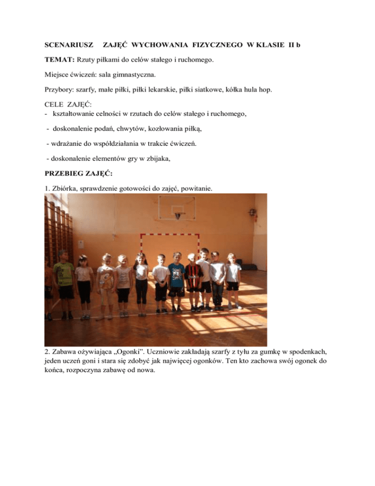 SCENARIUSZ ZAJĘĆ WYCHOWANIA FIZYCZNEGO W KLASIE II b