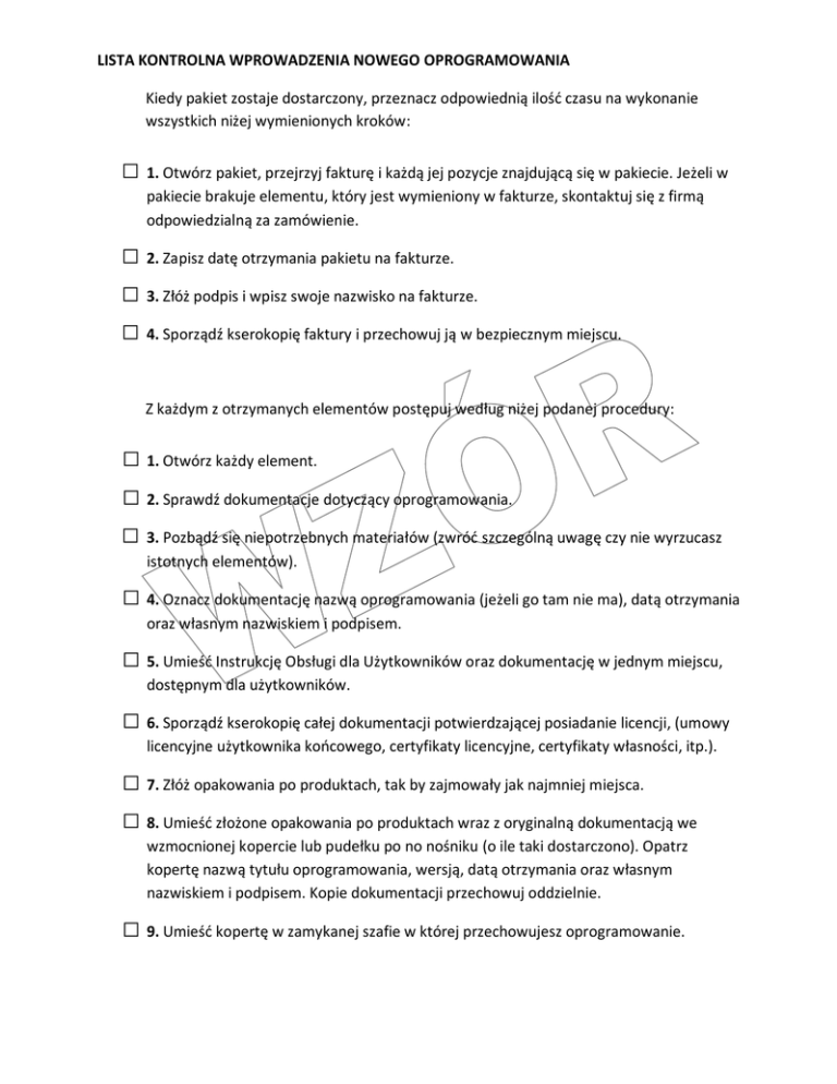 Lista kontrolna wprowadzenia nowego oprogramowania
