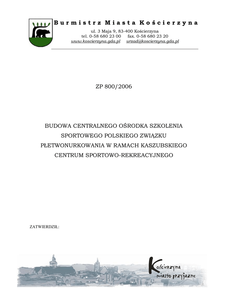 Burmistrz Miasta Kościerzyna ul. 3 Maja 9, 83-400 Kościerzyna tel. 0-58 680 23 00 fax. 0-58 680 23 20 www.koscierzyna.gda.pl [email protected] ZP 800/2006 BUDOWA CENTRALNEGO OŚRODKA SZKOLENIA SPORTOWEGO POLSKIEGO ZWIĄZKU PŁETWONURKOWANIA W RAMACH KASZUBSKIEGO CENTRUM SPORTOWO-REKREACYJNEGO ZATWIERDZIŁ: I. INFORMACJE WNIOSEK O DOPUSZCZENIE DO UDZIAŁU W PRZETARGU OGRANICZONYM 1. Nazwa i adres Zamawiającego: Gmina Miejska Kościerzyna, 84-400 Kościerzyna, ul. 3 Maja 9, tel./fax. 0-58 680-23-66 www. koscierzyna.gda.pl 2. Określenie trybu zamówienia: przetarg ograniczony 3. Określenie przedmiotu zamówienia z podaniem informacji o możliwości składania ofert częściowych i oferty wariantowej. Budowa „Centralnego Ośrodka Szkolenia Sportowego Polskiego Związku Płetwonurkowania w ramach Kaszubskiego Centrum Sportowo – Rekreacyjnego w Kościerzynie” CPV 45.21.22.12-5 Zamówienie obejmuje budowę obiektu sportowego o powierzchni użytkowej 5.705,99 m2 i kubaturze 29.300 m3. W części głównej budynku (hala basenowa) zlokalizowane niecki basenów pływackiego 16,00x 25,00 m i rekreacyjnego do nauki pływania 8,00 x 19,70 m. Przewidziana jest strefa basenu dla nurków; strefa techniczna (sprężarkownia , pomieszczenie techniczne) oraz pomieszczenie z komorą dekompresyjną. Od strony niecki basenowej strefa odnowy biologicznej, sauny i łaźnie z szatniami. Zakres prac: Stan surowy zamknięty z pokryciem i wykończeniem, roboty branżowe instalacyjne niskoprądowe, elektryczne wewnętrzne, ciepło technologiczne, sanitarne (wod. kan. gaz. c.o), kotłownia, wentylacja, klimatyzacja, baseny z technologią, wyposażenie, roboty branżowe zewnętrzne instalacyjne, drogowe, odnawialne źródła energii. Dokumentacja projektowa jest do wglądu w siedzibie Zamawiającego. Zamawiający nie dopuszcza składania ofert częściowych Zamawiający nie dopuszcza składania oferty wariantowej. 4. Termin realizacji zamówienia: 02.10.2006r. – 14.08.2008r. W tym terminie należy zrealizować całe zadanie inwestycyjne. 5. Opis warunków udziału w postępowaniu, w tym odnoszących się do właściwości wykonawcy wraz z podaniem ich znaczenia oraz opis sposobu dokonania oceny spełnienia tych warunków. O udzielenie zamówienia mogą ubiegać się wykonawcy uprawnieni do występowania w obrocie prawnym, którzy spełniają następujące warunki:(z uwzględnieniem ich znaczenia, jeżeli dotyczy): 1) Średnioroczny obrót za ostatnie trzy lata obrachunkowe winien być nie mniejszy niż 10.000.000 PLN – znaczenie 35 % ; ocena – za spełnienie minimum 1 pkt, za każde pełne 1.000.000 PLN średnich obrotów z ostatnich trzech lat ponad wymagane minimum – 1 pkt, maksymalnie – 10 pkt, 2) zrealizowali w ciągu ostatnich pięciu lat ( tj. w okresie sierpień 2001 r. –sierpień 2006 r.) a jeżeli okres prowadzenia działalności jest krótszy – w tym okresie, co najmniej za 2.000.000 PLN brutto kubaturowe obiekty sportowe – znaczenie 35 %, ocena – za spełnienie minimum – 1 pkt, za każdy pełny 1 000 000 PLN ponad wymagane minimum – 1 pkt , maksimum – 10 pkt, 3) dysponują osobami zapewniającymi realizację zamówienia oraz posiadającymi kwalifikacje niezbędne do wykonania zamówienia, w tym: a) kierownik budowy (1 osoba) – posiadający uprawnienia do wykonywania samodzielnych funkcji w budownictwie w branży konstrukcyjno-budowlanej bez ograniczeń, przynależność do branżowej Izby Samorządu Zawodowego (opłacone składki co najmniej do 31 grudnia 2006 r.) co najmniej 5-letnie doświadczenie zawodowe w charakterze kierownika budowy w wykonywaniu podobnych prac (budowa konstrukcji żelbetowych), b) kierownik robót branży sanitarnej z uprawnieniami w zakresie sieci i instalacji sanitarnych (wod.kan, gaz, wentylacje) - co najmniej 5-letnie doświadczenie zawodowe, c) kierownik robót branży elektrycznej z uprawnieniami w zakresie sieci i instalacji elektrycznych – co najmniej 5-letnie doświadczenie zawodowe d) średnioroczne zatrudnienie w okresie ostatnich trzech lat w grupie personelu technicznego wynosi co najmniej 50 osób ( w ramach umowy o pracę 4) posiadają środki finansowe lub zdolność kredytową w wysokości co najmniej 3.000.000 PLN – znaczenie –30 %; ocena – za spełnienie minimum 1 pkt, za każde pełne 1.000.000 PLN ponad wymagane minimum – 1 pkt, maksymalnie 10 pkt, Opis sposobu dokonywania oceny spełniania warunków udziału w postępowaniu: Ocena wykonawców, którzy złożą wnioski oparta będzie na zasadzie „spełnia – nie spełnia” w odniesieniu do wszystkich warunków. Jeśli ilość wykonawców spełniających minimalne warunki będzie większa od 10, zamawiający dokona oceny wykonawców wg powyższych zasad, przydzielając punkty za wszystkie warunki (ranking wykonawców). 6. Informacja o oświadczeniach i dokumentach jakie mając dostarczyć wykonawcy w celu potwierdzenia spełnienia warunków udziału w postępowaniu. Wraz z WNIOSKIEM O DOPUSZCZENIE DO OGRANICZONYM wykonawcy składają n/w dokumenty: UDZIAŁU W PRZETARGU 1) Oświadczenie wykonawcy, że nie podlega wykluczeniu z postępowania na podstawie art. 24 ust. 1 ustawy Prawo zamówień publicznych (OŚWIADCZENIE NR 1) i spełnia warunki udziału w postępowaniu, o których mowa w art. 22 ust. 1 pkt 1 - 3 ustawy Prawo zamówień publicznych (OŚWIADCZENIE NR 2), 2) Aktualny odpis z właściwego rejestru albo aktualne zaświadczenie o wpisie do Ewidencji Działalności gospodarczej, wystawione nie wcześniej niż 6 miesięcy przed upływem terminu składania wniosków o dopuszczenie do udziału w postępowaniu, 3) Aktualna informacja z Krajowego Rejestru Karnego w zakresie określonym w art. 24 ust. 1 pkt 4 - 8 ustawy Prawo zamówień publicznych, wystawiona nie wcześniej niż 6 miesięcy przed upływem terminu składania wniosków o dopuszczenie do udziału w postępowaniu, 4) Aktualna informacja z Krajowego Rejestru Karnego w zakresie określonym w art. 24 u