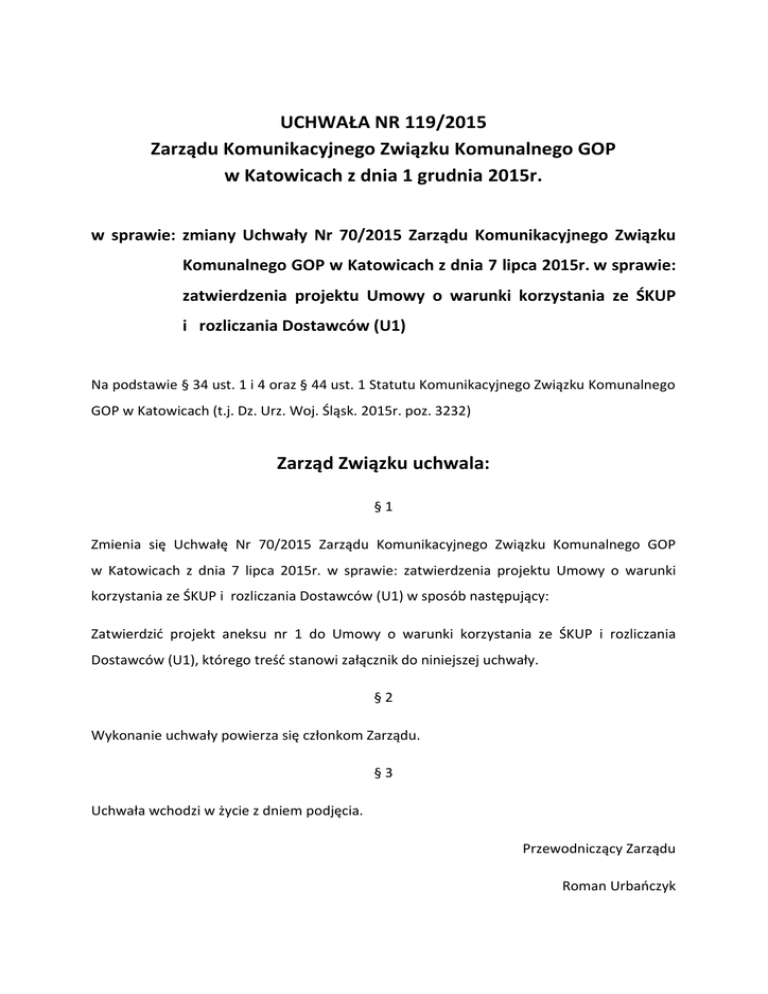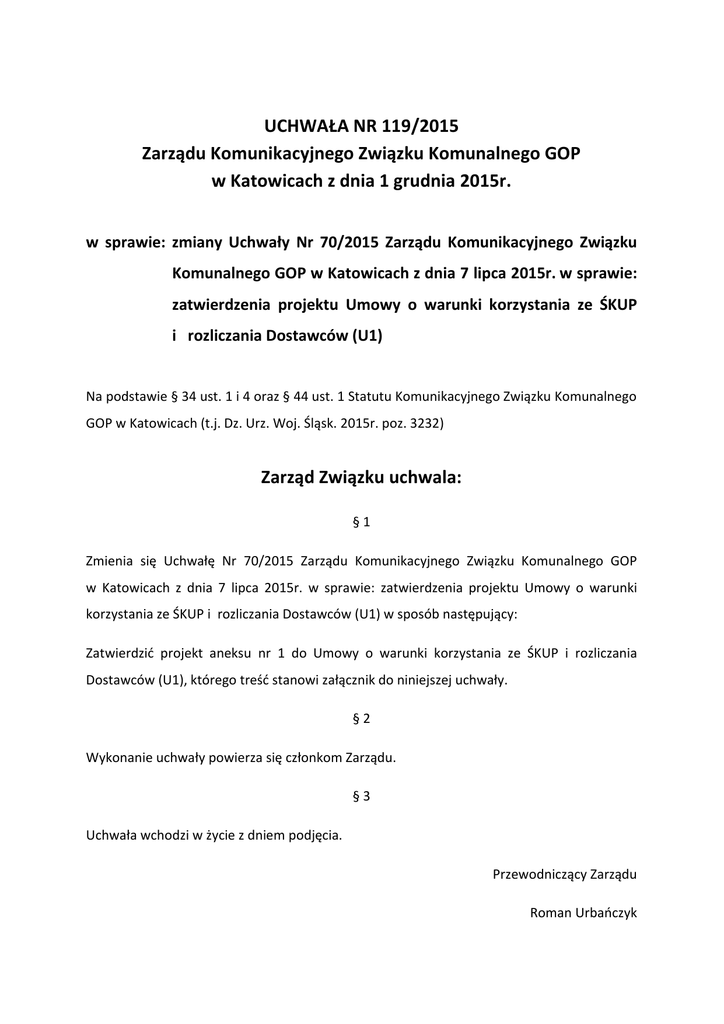 UCHWAŁA NR 119/2015 Zarządu Komunikacyjnego Związku