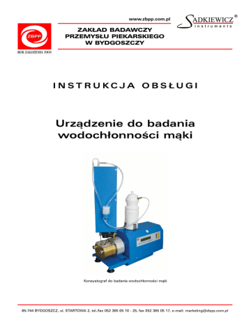 www.zbpp.com.pl ZAKŁAD BADAWCZY PRZEMYSŁU PIEKARSKIEGO W BYDGOSZCZY INSTRUKCJA OBSŁUGI Urządzenie do badania wodochłonności mąki Konsystograf do badania wodochłonności mąki 85-744 BYDGOSZCZ, ul. STARTOWA 2, tel./fax 052 365 05 10 - 25, fax 052 365 05 17, e-mail: [email protected] Wstęp W praktyce piekarskiej potwierdzono, że nie z każdej mąki pszennej uzyskuje się dobre ciasto nadające się do wypieku pieczywa. Wpływ na powyższe ma m.in. ilość i jakość glutenu, jakość skrobi, a nawet stopień granulacji mąki co wpływa na wodochłonność mąki i reologiczne (fizyczne) właściwości ciasta. Poznanie takich właściwości ułatwia: • • • • w w w w stacjach hodowli zbóż klasyfikowanie odmian ziarna pszenicy na cele piekarskie, młynach komponowanie mieszanek mąk na potrzeby piekarstwa, dużych piekarniach kierowanie procesami technologicznymi, placówkach naukowych prowadzenie prac badawczych. Urządzenia i metoda Do określania wodochłonności, zdolności wiązania wody przez mąkę opracowano specjalne urządzenie na 25 g mąki z możliwością automatycznego dozowania wody w czasie tworzenia (miesienia) ciasta do konsystencji 500 jednostek „S“ z jednoczesnym odczytem danych na czytniku cyfrowym wodochłonności mąki w % (spotykane różnice od 47 - 67 %). Określanie wodochłonności • przygotowanie konsystografu: włączenie wtyczki do gniazda na 230 V • napełnienie biurety wodą destylowaną • odczekanie do czasu ustabilizowania się temperatury 30 °C (wskazania na czytniku) • odważenie 25 g badanej mąki z dokładnością do 0,01 g www.zbpp.com.pl • przesypanie próbki mąki do dzieży • zamknięcie dzieży pokrywą • skierowanie końcówki biurety nad pokrywką • uruchomienie urządzenia celem nagrzania mąki w czasie ok. 1 min. • zaprogramowanie dozowania i automatycznego określania wodochłonności oraz przycisk „START“ • w toku oznaczania łopatką wprowadzić odłożoną mąkę lub ciasto ze ścian dzieży do środka miesideł • odczekać (3 - 4 minuty) do czasu pojawienia się wyniku analizy na czytniku • dosypać mąki (ok. 5 g) pszennej lub kukurydzianej w celu ułatwienia czyszczenia dzieży www.zbpp.com.pl • wyłączyć konsystograf przyciskiem „WYŁ.“ oraz z sieci • oczyścić dzieżę i miesidła z ciasta • osuszyć całość i ponownie zestawić (miesidło prawe nie pasuje w otwór lewy i odwrotnie) Uwagi końcowe • w toku działania konsystografu nie podnosić przykrywki (następuje wyłączenie urządzenia i programu) • dbać o czystość miesideł i dzieży • uważać, aby w toku nagarniania resztek mąki lub ciasta nie wpadła łopatka do dzieży (nastąpi uszkodzenie miesiarki - droga naprawa) • praca w laboratorium nie ogrzanym może wpływać niekorzystnie na wyniki analizy prowadzonej w temp. 30 °C. • zabiegać o mąki o wysokich parametrach wodochłonności - korzyści ekonomiczne Przykład I Ze 100 kg mąki o wodochłonności 47% można uzyskać 147 kg ciasta o konsystencji 500 j. konsystograficznych lub 150 kg ciasta o konsystencji 350 j. konsystograficznych. Przykład II Ze 100 kg mąki o wodochłonności 62% można uzyskać 162 kg ciasta o konsystencji 500 j. konsystograficznych lub 165 kg ciasta o konsystencji 350 j. konsystograficznych. www.zbpp.com.pl