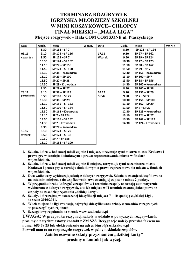 komunikat-terminarz -mała liga_mini-kosz-chł-09-10