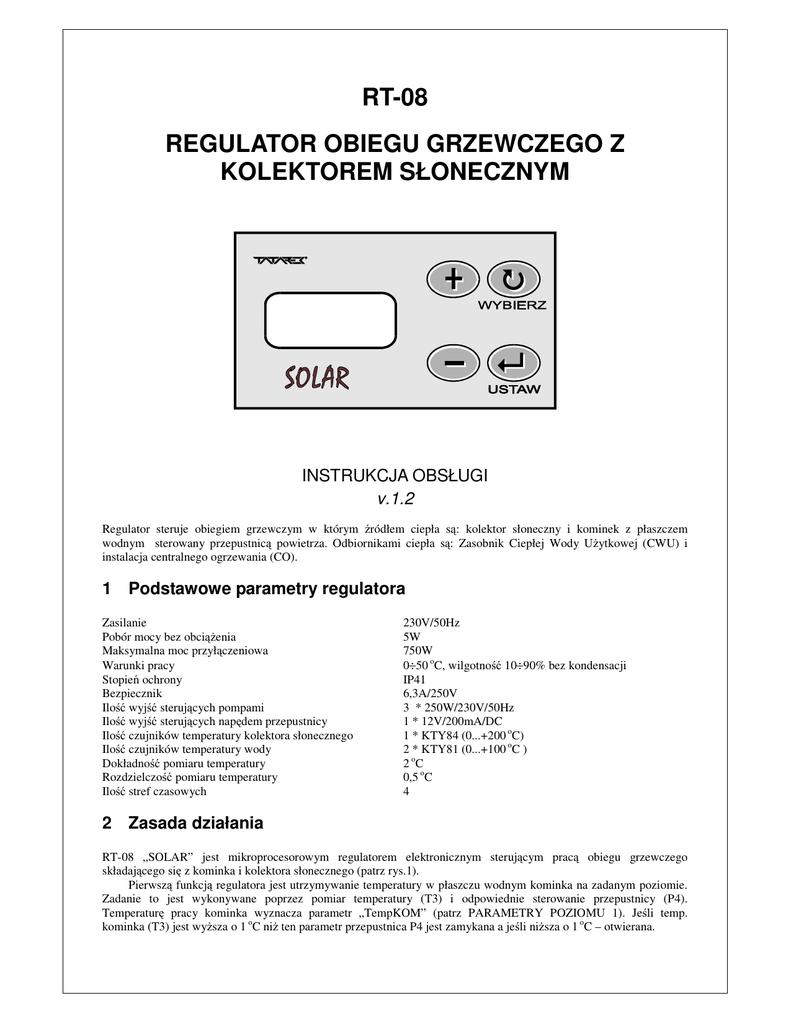 RT-08 REGULATOR OBIEGU GRZEWCZEGO Z KOLEKTOREM