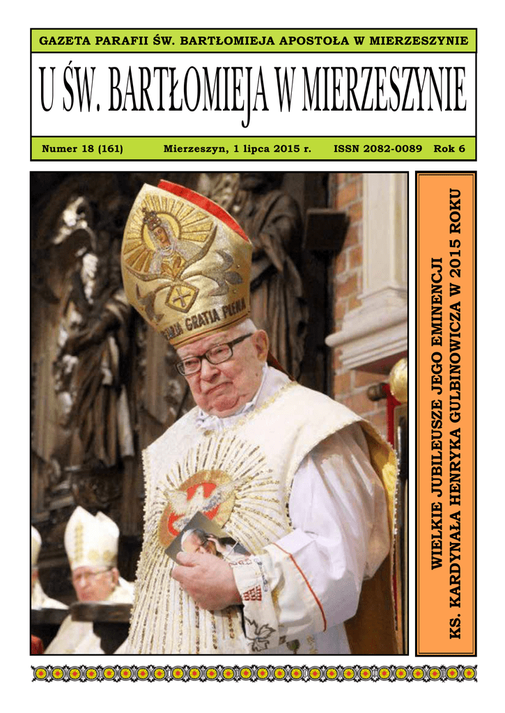 GAZETA PARAFII ŚW. BARTŁOMIEJA APOSTOŁA W MIERZESZYNIE U SW. BARTŁOMIEJA W MIERZESZYNIE ` Mierzeszyn, 1 lipca 2015 r. ISSN 2082-0089 Rok 6 WIELKIE JUBILEUSZE JEGO EMINENCJI KS. KARDYNAŁA HENRYKA GULBINOWICZA W 2015 ROKU Numer 18 (161) U ŒW. BART£OMIEJA W MIERZESZYNIE - nr 18 (161) JUBILEUSZE KS. KARDYNAŁA HENRYKA GULBINOWICZA Cztery piękne jubileusz obchodzi w tym roku Metropolita Senior Archidiecezji Wrocławskiej Ks. Kardynał Henryk Gulbinowicz: 65-lecie przyjęcia święceń kapłańskich, 45-lecie sakry biskupiej, 40-lecie posługi w metropolii wrocławskiej i 30. rocznicę otrzymania purpury kardynalskiej. Jubileusze uczczono 20 czerwca 2015 roku w Archikatedrze Wrocławskiej uroczystą Mszą świętą koncelebrowaną w intencji Jubilata pod przewodnictwem nuncjusza apostolskiego w Polsce Ks. Arcybiskupa Celestino Migliore. Wśród koncelebrantów obecni byli m.in. wychowankowie Księdza Kardynała: Ks. Arcybiskup Józef Kowalczyk Prymas Senior, Ks. Arcybiskup Sławoj Leszek Głódź Metropolita Gdański, Ks. Biskup Edward Janiak Biskup Kaliski Ks. Biskup Ignacy Dec Biskup Świdnicki. Przybyli także m.in.: Ks. Arcybiskup Mieczysław Mokrzycki Metropolita Lwowski, Ks. Biskup Kazimierz Ryczan Biskup Senior Kielecki, Ks. Biskup Adam Dyczkowski Biskup Zielonogórsko Gorzowski Senior, Ks. Biskup Stefan Cichy Biskup Legnicki Senior. Witając wszystkich przybyłych gości i wiernych, Metropolita Wrocławski Ks. Arcybiskup Józef Kupny wskazał, że Ojciec Święty Franciszek uczy nas, że każdy Następca Apostołów jest wezwany do tego, by być mistrzem wiary oraz by głosić Dobrą Nowinę, która dla wszystkich jest źródłem nadziei. – Dziękując Bogu za to, że postawił na naszej drodze Jego Eminencję Ks. Kardynała Henryka Gulbinowicza, módlmy się, by zawsze był radosnym świadkiem Jezusa Chrystusa, Dobrego Pasterza, a przez swoją posługę przyciągał ludzi do Boga i do Kościoła – apelował Ks. Arcybiskup Józef Kupny. W okolicznościowej homilii Pasterz Kościoła Świdnickiego, nie tylko jeden z wychowanków, ale i wieloletnich najbliższych współpracowników Księdza Kardynała, Ks. Biskup Ignacy Dec podkreślił, że niezwykły ślad w duszy Księdza Kardynała pozostawił dom rodzinny, z którego wyniósł drogocenne wiano, wartości religijne i patriotyczne. Ksiądz Biskup wskazał, że przez prawie dwadzieścia osiem lat pasterzowania w Archidiecezji Wrocławskiej Ks. Kardynał Henryk Gulbinowicz zapisał się jako jeden z najwybitniejszych spośród 57 dotychczasowych jej włodarzy. Od samego początku rozwinął szeroką, wielokierunkową działalność duszpasterską i organizacyjną. Zainicjował budowę nowych kościołów i kaplic oraz punktów katechetycznych. Szczególną troską otaczał Metropolitalne Wyższe Seminarium Duchowne i Papieski Wydział Teologiczny, dbając o odpowiednią kadrę 2 1 lipca 2015 naukową i wychowawczą. Od początku wiedział, że dobra teologia i właściwa formacja sprzyjają pracy duszpasterskiej Kościoła. – Eminencjo, Kościół dolnośląski składa ci dziś homagium czci, wdzięczności i życzeń. Dziękujemy za doznaną życzliwość, otrzymane dobro i winszujemy obfitych darów Ducha Świętego na dalszą jesień życia. W duchu wdzięczności i miłości całujemy Twe spracowane dłonie i rąbek Twej purpury kardynalskiej i modlimy się do Pana Niebios, by zachował Cię wśród nas po najdłuższe lata – zakończył nagrodzoną gromkimi brawami homilię Ks. Biskup Ignacy Dec. Zabierając głos na zakończenie Mszy świętej, Ksiądz Kardynał Henryk Gulbinowicz stwierdził m.in.: „ Stoi przed Wami stary emeryt, jeżeli Pan Bóg pozwoli, to w październiku skończę 92 lata. Panu Bogu dziękuję, że urodziłem się w polskiej i katolickiej rodzinie, że Kościół obdarzył mnie wieloma sakramentami. – Do Wrocławia bałem się przychodzić. W Białymstoku miałem tylko 56 parafii i 162 księży oraz 43 siostry zakonne i 85 alumnów seminarium duchownego. A tutaj było ponad 500 parafii, przeszło 1500 duchownych diecezjalnych i zakonnych, 2500 sióstr zakonnych. Dziękuję Bogu, że tutaj przyszedłem, bo tak jak ja jestem wypędzony ze wschodnich rubieży RP, tak tutaj spotkałem wiele osób wyrzuconych z ziem wschodnich, południowych. Oni nie usiedli tutaj na ruinach i nie zaczęli płakać, że ich tak los skrzywdził, tylko zabrali się do roboty i wychowali pierwsze, drugie i trzecie pokolenie Polaków. Dziś możemy być dumni z dolnośląskiej ziemi i z jej mieszkańców – wspominał Jubilat. Metropolita Gdański Ks. Arcybiskup Sławoj Leszek Głódź, jeden z wychowanków Księdza Kardynała, powiedział, że takie rocznice i tej rangi nie zdarzają się nawet raz na sto lat. Podkreślił, że zakotwiczenie Księdza Kardynała we Wrocławiu, a wcześniej w Wilnie, Białymstoku ubogacało tamtejsze środowisko. Nie mówiąc już o czasach przemian ustrojowych, powstaniu ,,Solidarności”. s– Prezydent prof. Lech Kaczyński, nadając Księdzu Kardynałowi najwyższe polskie odznaczenie Order Orła Białego, po prostu wiedział, co robi – podkreślił Ks. Arcybiskup Sławoj Leszek Głódź. Inny z wychowanków, a także jeden z wieloletnich najbliższych współpracowników Jubilata, Ks. Biskup Edward Janiak Biskup Kaliski wskazał, że Ksiądz Kardynał był z jednej strony niezwykle wymagającym przełożonym, a z drugiej wspaniałym ojcem. – Był bardzo dokładny we wszystkich sprawach, decyzjach. Dlatego nas, współpracowników, to bardzo zobowiązywało – dodał Ks. Biskup Edward Janiak. MAREK ZYGMUNT U ŒW. BART£OMIEJA W MIERZESZYNIE - nr 18 (161) 1 lipca 2015 3 Mierzeszyn, 20 czerwca 2015 roku Jego Eminencja Ks. Kardynał HENRYK GULBINOWICZ Wrocław Eminencjo, Łączę się w serdecznej modlitwie z Ks. Kardynałem i Ludem Bożym z okazji doniosłych Twoich jubileuszy, nasz drogi Arcypasterzu. Rok 2015 to dziękczynienie Panu Bogu za naszego Księdza Kardynała, za