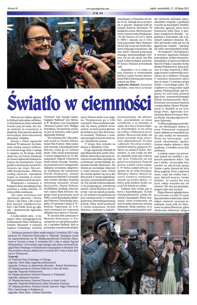 Holland "W ciemności" (In Darkness) wiedzą wszyscy wielbiciele wartościowego kina i czekają