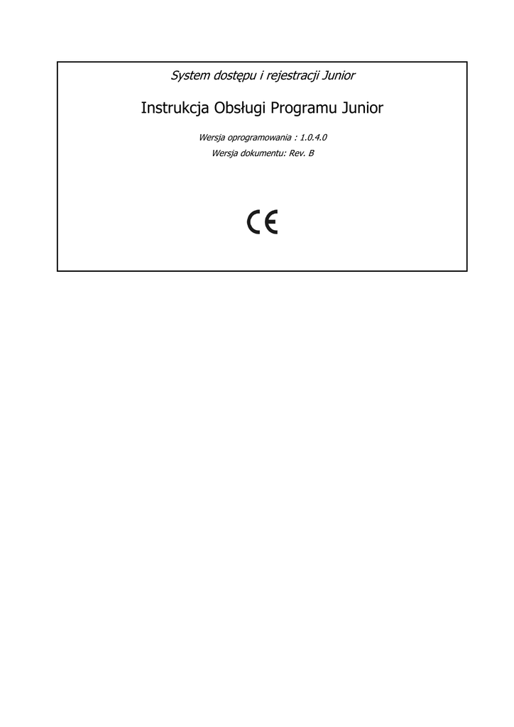 Instrukcja Obsługi Programu Junior System dostępu i rejestracji Junior
