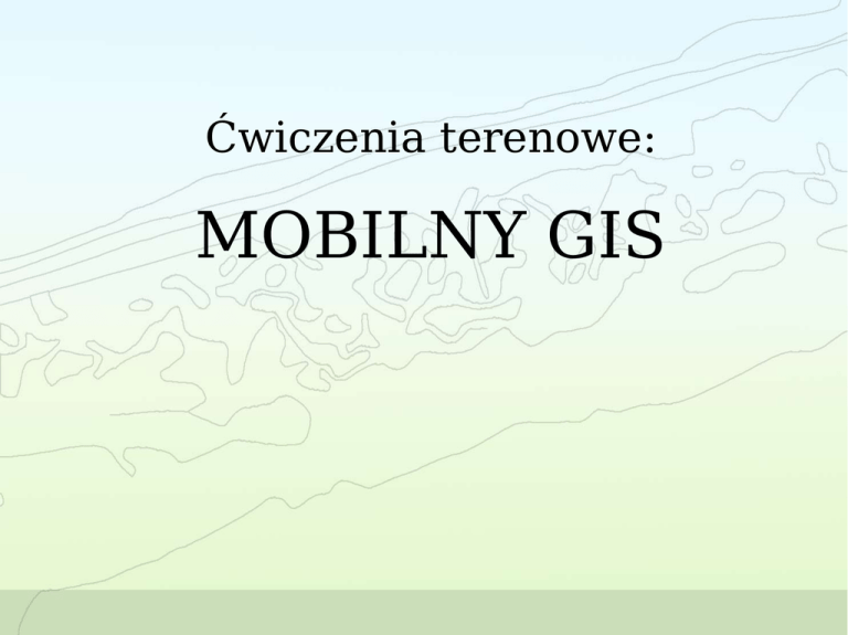 Ćwiczenia terenowe: MOBILNY GIS Kto? dr Marek Ewertowski mgr Krzysztof Piotrowski dr Michał Rzeszewski Gdzie? ● Stacja Monitoringu Środowiska Przyrodniczego UAM w Białej Górze na Wolinie, Biała Góra 6, 72-500 Międzyzdroje ● Kierownik dr Jacek Tylkowski, tel. 913222939 ● Pokoje wieloosobowe (6) - 15 zł/noc ● Kuchnia do dyspozycji ● Internet Wi-Fi Jak dojechać? Interaktywna mapka na stronie: http://www.earthisflat.net/mgis/ Kiedy? ● Ćwiczenia trwają od 24 do 30 września 2011 ● Spotkanie organizacyjne w sobotę 24.09 o godzinie 20 ● 25-29 - ćwiczenia w terenie+wykłady - ok. 9h dziennie ● W ciągu dnia przerwa obiadowa - do uzgodnienia ● 30.09 zaliczenie ćwiczeń i opuszczenie stacji Co trzeba zabrać? ● ● ● Odzież: ● Ciepły ubiór ● Kurtka przeciwdeszczowa (+ew. parasol) ● Dobre buty i plastry na odciski ● Kapielówki (dla optymistów) Materiały do ćwiczeń: ● notatnik terenowy ● długopisy, ołówki Ubezpieczenie NNW: ● ● brak potwierdzenia uniemożliwia udział w zajęciach Dobry nastrój i chęć do pracy Co można zabrać? ● Komputer ● Odbiornik GPS (oprogramowanie + kable) ● Aparat fotograficzny ● Materiały kartograficzne ● Pytania i własne pomysły Wstępny program ćwiczeń Dzień Program Ilość grup 24 Spotkanie organizacyjne, podział na grupy n/d 25 Wykład 2,5 h. Podstawy obsługi odbiorników GPS. Rejestrowanie, opis i odnajdywanie punktów topograficznych. 2 26 Wykład 2,5 h. Zaawansowana obsługa odbiorników GPS. Opracowanie koncepcji i przeprowadzenie gry terenowej. Wykorzystanie danych pomiarowych. 2 27 Kartowanie środowiska miejskiego na przykładzie Open Street Map. 3 28 Modelowanie ukształtowania terenu przy pomocy RTK GPS. Mobilne oprogramowanie GIS – ArcPad 3 29 Kartowanie wybranych elementów środowiska przyrodniczego. 3 30 Zaliczenie wykładu i części praktycznej. Zakończenie ćwiczeń terenowych. n/d Dziękuję za uwagę Prezentacja i interaktywna mapka na stronie: http://www.earthisflat.net/mgis/