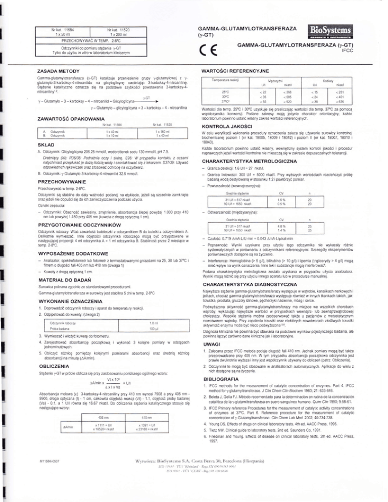 Absorbancja molowa (a) 3"karboksy-4'nitroaniliny przy 410 nm wynosi 7908 a przy 405 nm 9900' droga optyczna (l) - 1 crn, całkowita objętoścreakcji (V0_ 1.1' objętoścpróby badane]