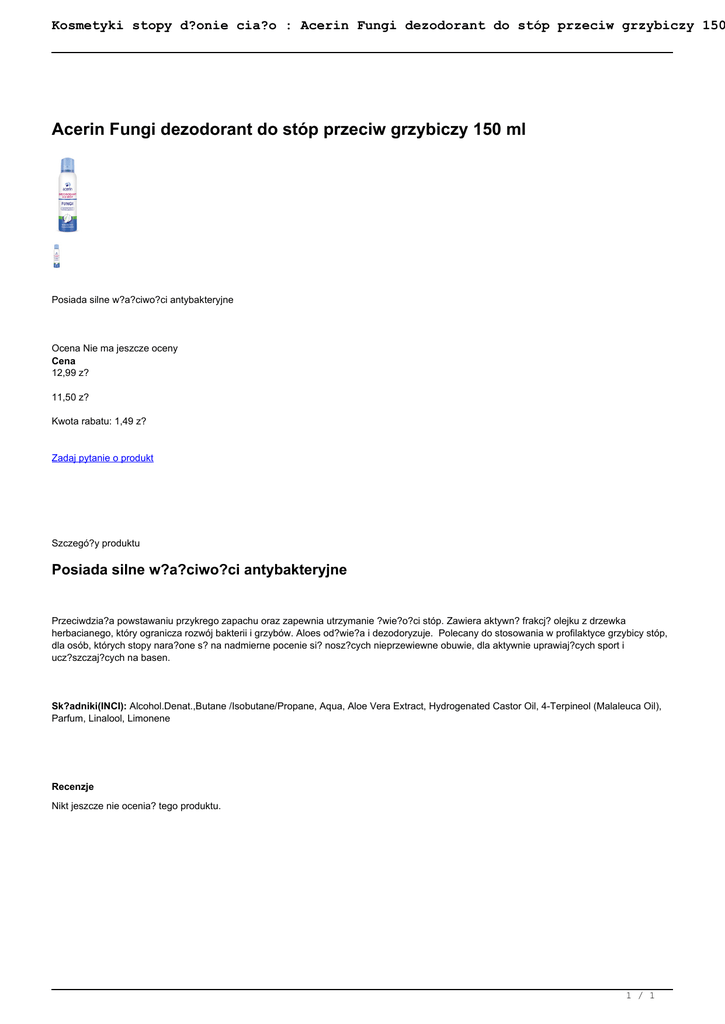 Acerin Fungi dezodorant do stóp przeciw grzybiczy 150 ml