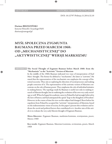 MYŚL SPOŁeCZNA ZYGMUNTA BAUMANA PRZeD MARCeM 1968