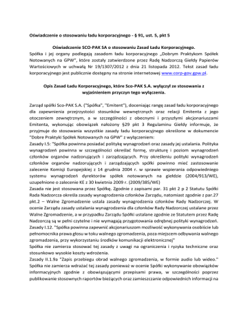 Opis Zasad Ładu Korporacyjnego, które Sco-PAK S.A. wyłączył ze stosowania z