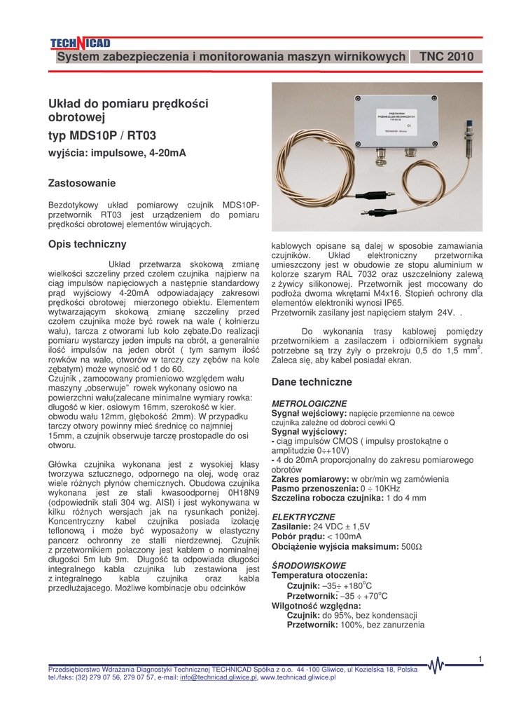 Układ do pomiaru prędkości obrotowej MDS-RT03