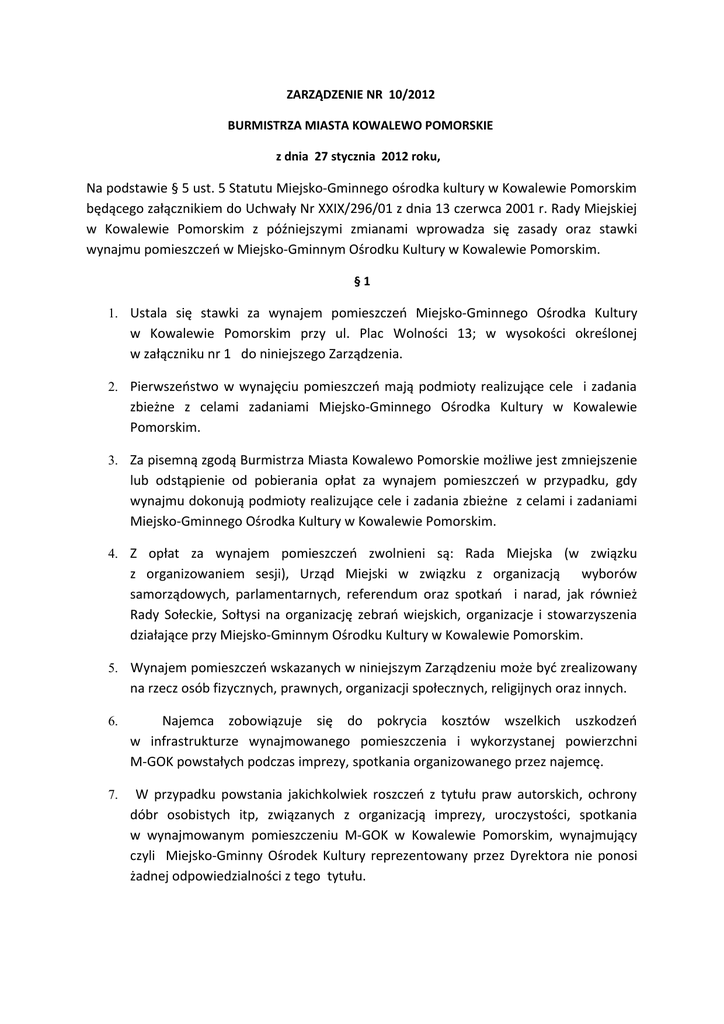 zarządzenie nr 10/2012 - kowalewopomorskie.ornet.pl