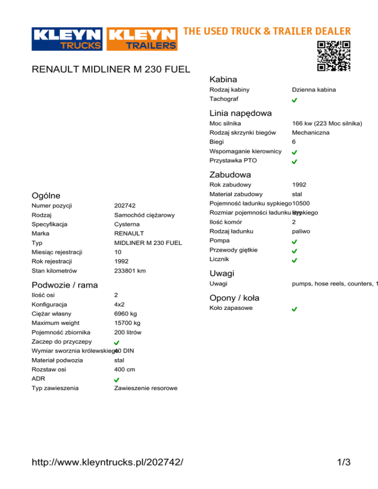 http://www.kleyntrucks.pl/202742/ 1/3 RENAULT MIDLINER M 230