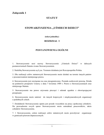 Załącznik 1 STATUT STOWARZYSZENIA „UŚMIECH DZIECI”