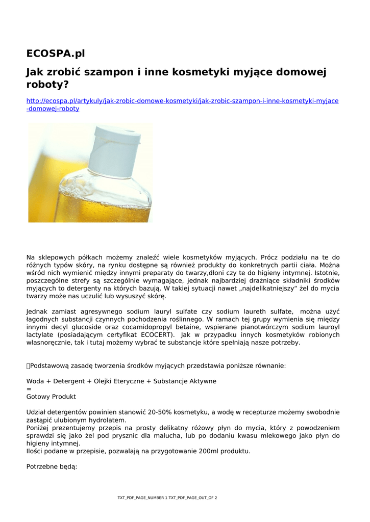 ECOSPA.pl Jak zrobić szampon i inne kosmetyki myjące domowej