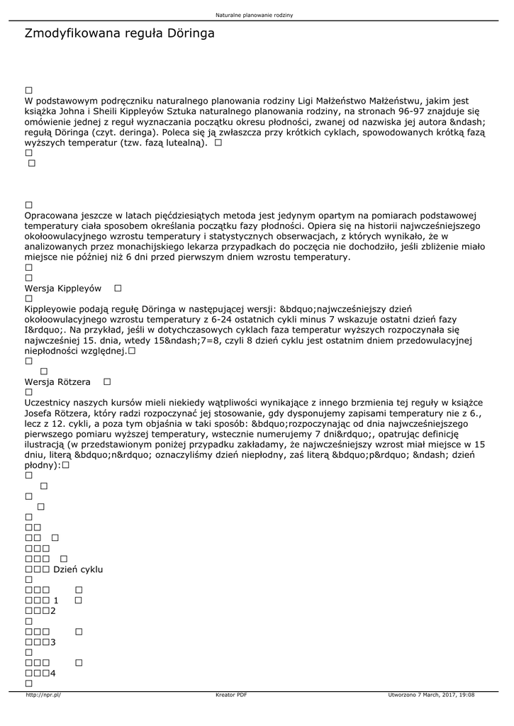 Zmodyfikowana reguła Döringa - Naturalne planowanie rodziny