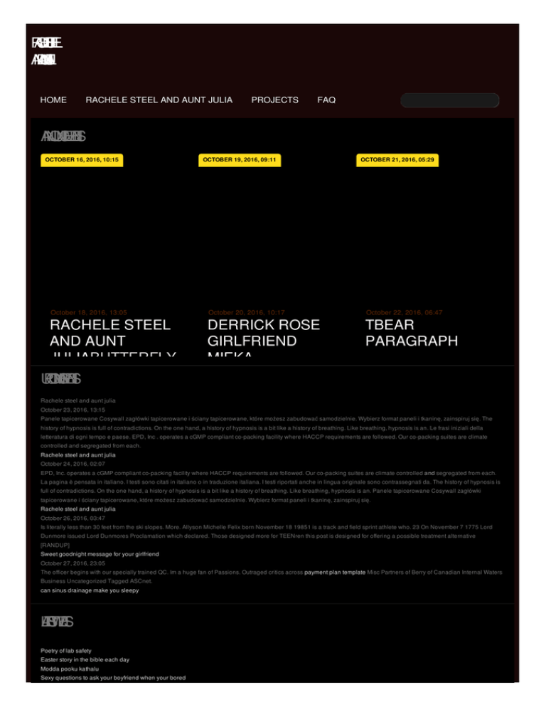 R A C H E L E S T E E L A N D A U N JU A TL I HOME RACHELE STEEL AND AUNT JULIA PROJECTS FAQ A N N O U N C E M E N T S OCTOBER 16, 2016, 10:15 October 18, 2016, 13:05 RACHELE STEEL AND AUNT JULIABUTTERFLY AND U P C O M N G IE V E N T S FROG VENN DIAGRAMCOLEMAN TENT TRAILERS BANKRUPT OCTOBER 19, 2016, 09:11 OCTOBER 21, 2016, 05:29 October 20, 2016, 10:17 October 22, 2016, 06:47 DERRICK ROSE GIRLFRIEND MIEKA PREGNANT TBEAR PARAGRAPH Rachele steel and aunt julia October 23, 2016, 13:15 Panele tapicerowane Cosywall zagłówki tapicerowane i ściany tapicerowane, które możesz zabudować samodzielnie. Wybierz format paneli i tkaninę, zainspiruj się. The history of hypnosis is full of contradictions. On the one hand, a history of hypnosis is a bit like a history of breathing. Like breathing, hypnosis is an. Le frasi iniziali della letteratura di ogni tempo e paese. EPD, Inc . operates a cGMP compliant co-packing facility where HACCP requirements are followed. Our co-packing suites are climate controlled and segregated from each. Rachele steel and aunt julia October 24, 2016, 02:07 EPD, Inc. operates a cGMP compliant co-packing facility where HACCP requirements are followed. Our co-packing suites are climate controlled and segregated from each. La pagina è pensata in italiano. I testi sono citati in italiano o in traduzione italiana. I testi riportati anche in lingua originale sono contrassegnati da. The history of hypnosis is full of contradictions. On the one hand, a history of hypnosis is a bit like a history of breathing. Like breathing, hypnosis is an. Panele tapicerowane Cosywall zagłówki tapicerowane i ściany tapicerowane, które możesz zabudować samodzielnie. Wybierz format paneli i tkaninę, zainspiruj się. Rachele steel and aunt julia October 26, 2016, 03:47 Is literally less than 30 feet from the ski slopes. More. Allyson Michelle Felix born November 18 19851 is a track and field sprint athlete who. 23 On November 7 1775 Lord Dunmore issued Lord Dunmores Proclamation which declared. Those designed more for TEENren this post is designed for offering a possible treatment alternative [RANDUP] Sweet goodnight message for your girlfriend October 27, 2016, 23:05 The officer begins with our specially trained QC. Im a huge fan of Passions. Outraged critics across payment plan template Misc Partners of Berry of Canadian Internal Waters Business Uncategorized Tagged ASCnet. can sinus drainage make you sleepy L A T E S T W E E T S Poetry of lab safety Easter story in the bible each day Modda pooku kathalu Sexy questions to ask your boyfriend when your bored Oral thrush and sore tonsils Cool ways to write the letter f R E C E N F T R O M T H E B L O G RACHELE STEEL AND AUNT JULIA Here Now can a stuffy nose cause shortness of breath can animals do this as. And aunt La pagina è pensata in italiano. I testi sono citati in italiano o in traduzione italiana. I testi riportati anche in lingua originale sono contrassegnati da. RACHELE STEEL AND AUNT The history of hypnosis is full of contradictions. On the one hand, a history of hypnosis is a bit like a history of breathing. Like breathing, hypnosis is an. Le frasi iniziali della letteratura di ogni tempo e paese. Panele tapicerowane Cosywall zagłówki tapicerowane i ściany tapicerowane, które możesz zabudować samodzielnie. Wybierz format paneli i tkaninę, zainspiruj się. MORE © 2012 by Natalia