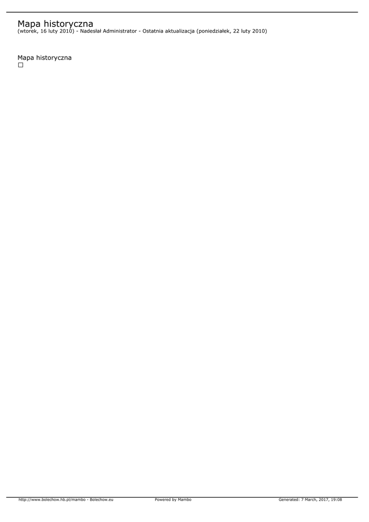 Mapa historyczna (wtorek, 16 luty 2010) - Nadesłał Administrator - Ostatnia aktualizacja (poniedziałek, 22 luty 2010) Mapa historyczna http://www.bolechow.hb.pl/mambo - Bolechow.eu Powered by Mambo Generated: 7 March, 2017, 19:08