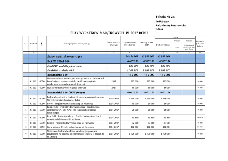 Tabela Nr 2a PLAN WYDATKÓW MAJĄTKOWYCH W 2017 ROKU §
