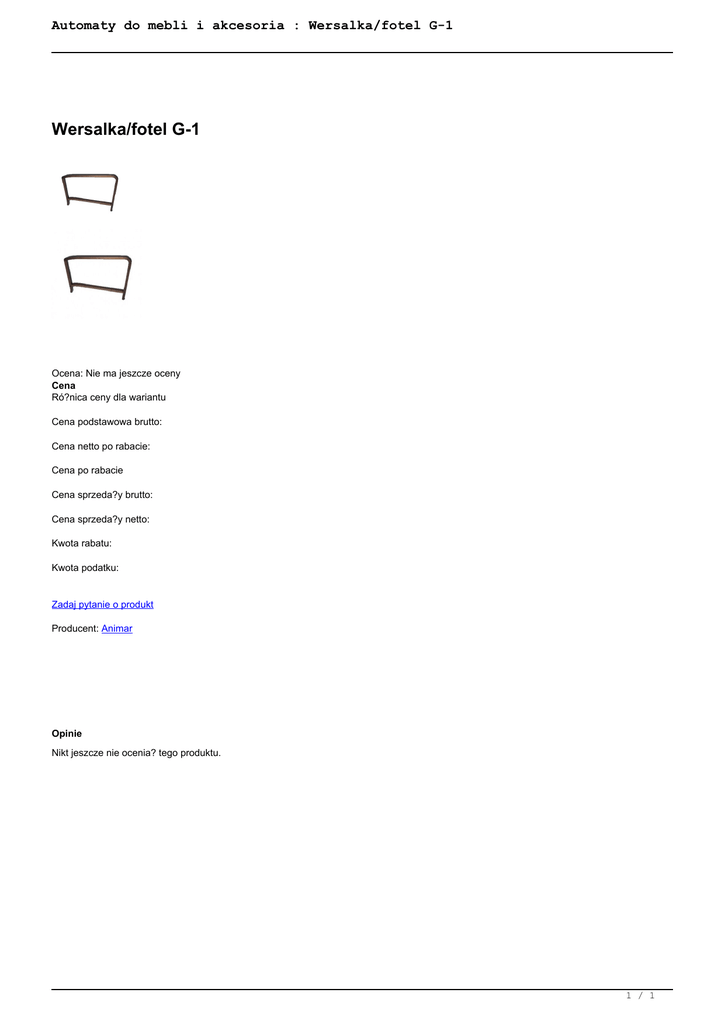 Automaty do mebli i akcesoria : Wersalka/fotel G-1 Wersalka/fotel G-1 Ocena: Nie ma jeszcze oceny Cena Ró?nica ceny dla wariantu Cena podstawowa brutto: Cena netto po rabacie: Cena po rabacie Cena sprzeda?y brutto: Cena sprzeda?y netto: Kwota rabatu: Kwota podatku: Zadaj pytanie o produkt Producent: Animar Opinie Nikt jeszcze nie ocenia? tego produktu. 1 / 1 Powered by TCPDF (www.tcpdf.org)
