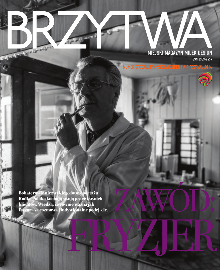 MIEJSKI MAGAZYN MILEK DESIGN ISSN 2353-2459 NUMER SPECJALNY // SIERADZ OPEN HAIR FESTIVAL 2014 Bohaterowie niezwykłego fotoreportażu Radka Polaka kochają swoją pracę i swoich klientów. Wiedzą, że równie ważna jak fryzura są rozmowa i indywidualne podejście. ZAWÓD: FRYZJER miasto // moda // design // kultura // sztuka MIEJSKI MAGAZYN MILEK DESIGN NUMER SPECJALNY // SIERADZ OPEN HAIR FESTIVAL 2014 04 W OBIEKTYWIE RADKA POLAKA Zawód: fryzjer Kilkadziesiąt zdjęć Radka Polaka zabiera nas w podróż do świata fryzjerskich tradycji i ludzi dumnych ze swojego fachu 14 CZŁOWIEK BRZYTWA Sztuka znikania Historia artystycznej drogi Andrzeja Piasecznego 17 FRYZJERSCY MISTRZOWIE WSZECH CZASÓW Antoine Cierplikowski i jego gwiazdy 22 HITY SIERADZ OPEN HAIR FESTIVAL Najważniejsze wydarzenia: koncerty, pokazy mistrzów, konkurs im. Antoine’a Cierplikowskiego 26 SZEŚĆ LAT SIERADZ OPEN HAIR FESTIVAL Fryzjerska podróż w czasie 30 WSZYSTKO, CO CHCIELIBYŚCIE WIEDZIEĆ O CIERPLIKOWSKIM 14 22 18 22 Brzytwa // Miejski Magazyn Milek Design Wydawca: Go Culture sp. z o.o., ul. Puławska 24a/32, 02-512 Warszawa na zlecenie Milek Design, www.milekdesign.pl ISSN 2353-1576 Redakcja: ul Rakowiecka 1./3 lok.4, 02-517 Warszawa tel. 22 499 10 10, [email protected] Zespół redakcyjny: opieka artystyczna – Anna Król, redaktor prowadząca – Julia Rzemek, sekretarz redakcji – Katarzyna Rudzik Druk: Poligrafus Jacek Adamiak Skład: gra-fika.com Na okładce: zdjęcie Radka Polaka Zdjęcia str. 2: materiały promocyjne SOHF SKONTAKTUJ SIĘ Z NAMI: Redakcja i promocja: Katarzyna Rudzik, [email protected] Partner specjalny numeru: Sieradz Open Hair Festival 28 32 ROZMOWA Z JACKIEM WALCZAKIEM, PREZYDENTEM SIERADZA o dotychczasowych edycjach festiwalu i kolejnych inwestycjach związanych z Antoinem Cierplikowskim 33 SIERADZ ŚLADAMI CIERPLIKOWSKIEGO Zakątki mistrza, czyli miejsca, które trzeba odwiedzić podczas wizyty w Sieradzu 34 RAPORT SPECJALNY Polka u fryzjera 36 GWIAZDY NA SOHF 38 TAK SIĘ BAWILIŚMY Miasto talentów, święto artystów! Sieradz Open Hair Festival to wyjątkowe wydarzenie, podczas którego nie tylko prezentujemy najciekawszych artystów grzebienia, ale także zabieramy Państwa w podróż do przeszłości. Dzięki Antoine’owi Cierplikowskiemu przenosimy się do szalonego Paryża lat 20. i 30., podpatrujemy fryzury najsłynniejszych gwiazd srebrnego ekranu, śledzimy największe modowe rewolucje dokonywane grzebieniem Cierplikowskiego i nożyczkami Chanel. W Sieradzu, jak przystało na miejsce urodzenia geniusza grzebienia, nowoczesne spotka się z przeszłością, młode talenty z prawdziwymi mistrzami, a fryzjerskie atelier XXI wieku konkurować będą o palmę pierwszeństwa z tradycyjnymi zakładami fryzjerskimi. Tegorocznej edycji SOHF towarzyszy hasło „Kuźnia talentów”, dzięki któremu zgodnie z festiwalową tradycją nawiązujemy do jednego z obszarów działalności wielkiego Antoine’a Cierplikowskiego. Podczas Sieradz Open Hair Festival, od 18 do 20 lipca przypominamy rzemieślników i artystów, kreatorów i nauczycieli – ludzi, którzy od lat nie tylko zajmują się fryzjerskim fachem, ale także przekazując go z pokolenia na pokolenie wychowują kolejnych adeptów fryzjerskiej sztuki. Ich mistrzem jest Antoine Cierplikowski, fryzjer z Paryża, który pod koniec życia powrócił do rodzinnego miasta, by tworzyć „kuźnię talentów” i ułatwiać start w zawodzie młodym zdolnym kolegom. „Brzytwa” trafia w Państwa ręce dzięki życzliwości innych niezwykłych fryzjerów. Duet Katarzyna Poniatowska-Miłek i Dariusz Miłek to styliści, którzy z sieradzkim festiwalem związani są od samego początku. W tym roku użyczają nam łamów swojego magazynu, a także przypominają najciekawsze kreacje przygotowane w ostatnich pięciu latach dla Sieradz Open Hair Festival. REDAKCJA // 3 W obiektywie Radka Polaka Zawód: fryzjer Miejsca, gdzie czas się zatrzymał. Fryzjerzy w kitlach i wierni im od kilkudziesięciu lat klienci. To bohaterowie wyjątkowego fotoreportażu, którego premiera towarzyszy Sieradz Open Hair Festival 2014. Zdjęcia: Radek Polak Tekst: Anna Król Kilkadziesiąt zdjęć Radka Polaka zabiera nas w podróż do świata fryzjerskich tradycji i ludzi dumnych ze swojego fachu. To próba utrwalenia w nastrojowych kadrach miejsc i osób powoli odchodzących w przeszłość. Polak zagląda do zakładów, gdzie wciąż najważniejsza jest rozmowa z klientem, indywidualne traktowanie, w których przy szumie suszarki opowiada się rodzinne historie, nawiązuje wieloletnie przyjaźnie. Tu fryzjer jest kimś więcej niż dostawcą szybkiej i przewidywalnej usługi. Bywa psychologiem, partnerem do dyskusji, doradcą w życiowych dylematach. Z tym niewspółczesnym podejściem do klienta idą w parze tradycyjne metody strzyżenia, golenia, ondulowania. Klimatu dodają bibeloty z przeszłości, które niczym dekoracje zdobią ściany i półki zakładów: stare zdjęcia, ufryzowane głowy manekinów, kalendarze, maskotki, figurki, sztuczne kwiaty. Fotoreportaż Radka Polaka to okazja, by podumać nad metamorfozą, jaką przeszedł fryzjerski zawód oraz zachować od zapomnienia ostatnich strażników fryzjerskiej tradycji. Jest wśród nich Stefana Baryga, którego zakład mieści się przy ul. Żegańskiej 13 w Międzylesiu od 90 lat. Kiedy powstawał w 1924 r. kobiety szturmowały salony piękności i obcinały włosy na krótko, a klienci przychodzili na ul. Żegańską co sobota, by się ogolić, przystrzyc i przygotować do kolejnego tygodnia. Przy ul. Żelaznej 31 w Warszawie od ponad 40 lat pracują panowie Janusz, Witold i Tadeusz, którzy kształtowali trendy w swojej dzielnicy – Przychodzą do mnie klienci, którzy kiedyś siadali tu na dziecięcym stołeczku, a teraz przyprowadzają własne dzieci. W zakładzie można podziwiać brzytwę z 1905 r., którą ostrzyć trzeba na pasku. Odkąd Unia Europejska zabroniła strzyżenia
