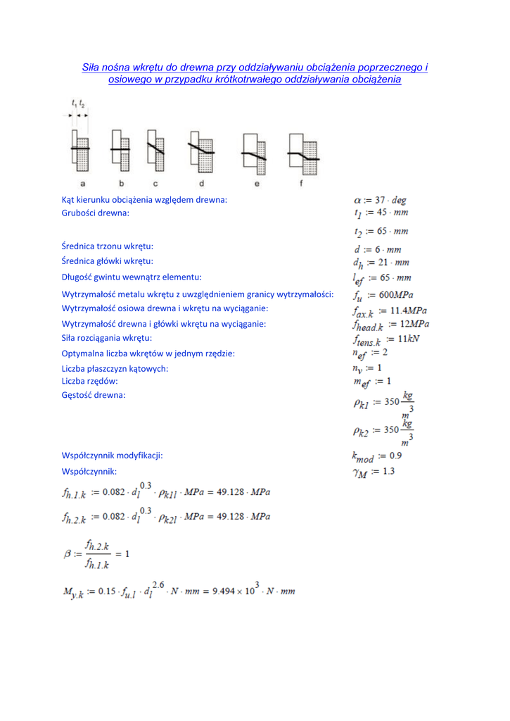 Siła nośna wkrętu do drewna przy oddziaływaniu obciążenia poprzecznego i osiowego w przypadku krótkotrwałego oddziaływania obciążenia Kąt kierunku obciążenia względem drewna: Grubości drewna: Średnica trzonu wkrętu: Średnica główki wkrętu: Długość gwintu wewnątrz elementu: Wytrzymałość metalu wkrętu z uwzględnieniem granicy wytrzymałości: Wytrzymałość osiowa drewna i wkrętu na wyciąganie: Wytrzymałość drewna i główki wkrętu na wyciąganie: Siła rozciągania wkrętu: Optymalna liczba wkrętów w jednym rzędzie: Liczba płaszczyzn kątowych: Liczba rzędów: Gęstość drewna: Współczynnik modyfikacji: Współczynnik: Siła wylotowa wkrętu: Siła nośna wkrętu przy oddziaływaniu obciążenia poprzecznego w przypadku kąta po jednej stronie Siła wylotowa i poprzeczna: Siła nośna wkrętu do drewna przy oddziaływaniu obciążenia poprzecznego i osiowego w przypadku krótkotrwałego oddziaływania obciążenia Kąt kierunku obciążenia względem drewna: Grubości drewna: Średnica trzonu wkrętu: Średnica główki wkrętu: Długość gwintu wewnątrz elementu: Wytrzymałość metalu wkrętu z uwzględnieniem granicy wytrzymałości: Wytrzymałość osiowa drewna i wkrętu na wyciąganie: Wytrzymałość drewna i główki wkrętu na wyciąganie: Siła rozciągania wkrętu: Optymalna liczba wkrętów w jednym rzędzie: Liczba płaszczyzn kątowych: Liczba rzędów: Gęstość drewna: Współczynnik modyfikacji: Współczynnik: Siła wylotowa wkrętu: Siła nośna wkrętu przy oddziaływaniu obciążenia poprzecznego w przypadku kąta po jednej stronie Siła wylotowa i poprzeczna: Siła nośna wkrętu do drewna przy oddziaływaniu krótkotrwałego obciążenia poprzecznego Kąt kierunku obciążenia względem drewna: Grubości drewna: Średnica trzonu wkrętu: Średnica główki wkrętu: Długość gwintu wewnątrz elementu: Wytrzymałość metalu wkrętu z uwzględnieniem granicy wytrzymałości: Wytrzymałość osiowa drewna i wkrętu na wyciąganie: Wytrzymałość drewna i główki wkrętu na wyciąganie: Siła rozciągania wkrętu: Optymalna liczba wkrętów w jednym rzędzie: Liczba płaszczyzn kątowych: Liczba rzędów: Gęstość drewna: Współczynnik modyfikacji: Współczynnik: Siła wylotowa wkrętu: Siła nośna wkrętu przy oddziaływaniu obciążenia poprzecznego w przypadku kąta po jednej stronie Siła poprzeczna: Siła nośna wkrętu do drewna przy oddziaływaniu obciążenia poprzecznego o średnim czasie trwania Kąt kierunku obciążenia względem drewna: Grubości drewna: Średnica trzonu wkrętu: Średnica główki wkrętu: Długość gwintu wewnątrz elementu: Wytrzymałość metalu wkrętu z uwzględnieniem granicy wytrzymałości: Wytrzymałość osiowa drewna i wkrętu na wyciąganie: Wytrzymałość drewna i główki wkrętu na wyciąganie: Siła rozciągania wkrętu: Optymalna liczba wkrętów w jednym rzędzie: Liczba płaszczyzn kątowych: Liczba rzędów: Gęstość drewna: Współczynnik modyfikacji: Współczynnik: Siła wylotowa wkrętu: Siła nośna wkrętu przy oddziaływaniu obciążenia poprzecznego w przypadku kąta po jednej stronie Siła poprzeczna: